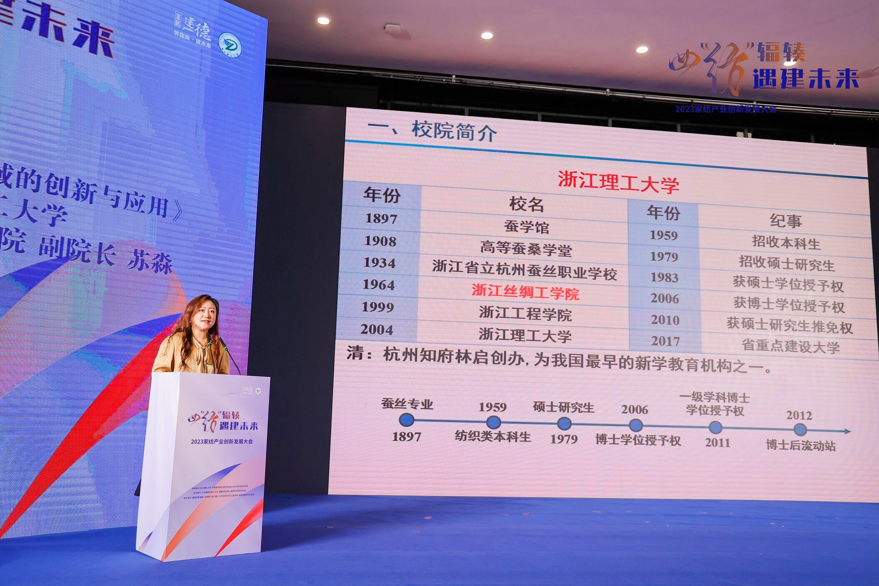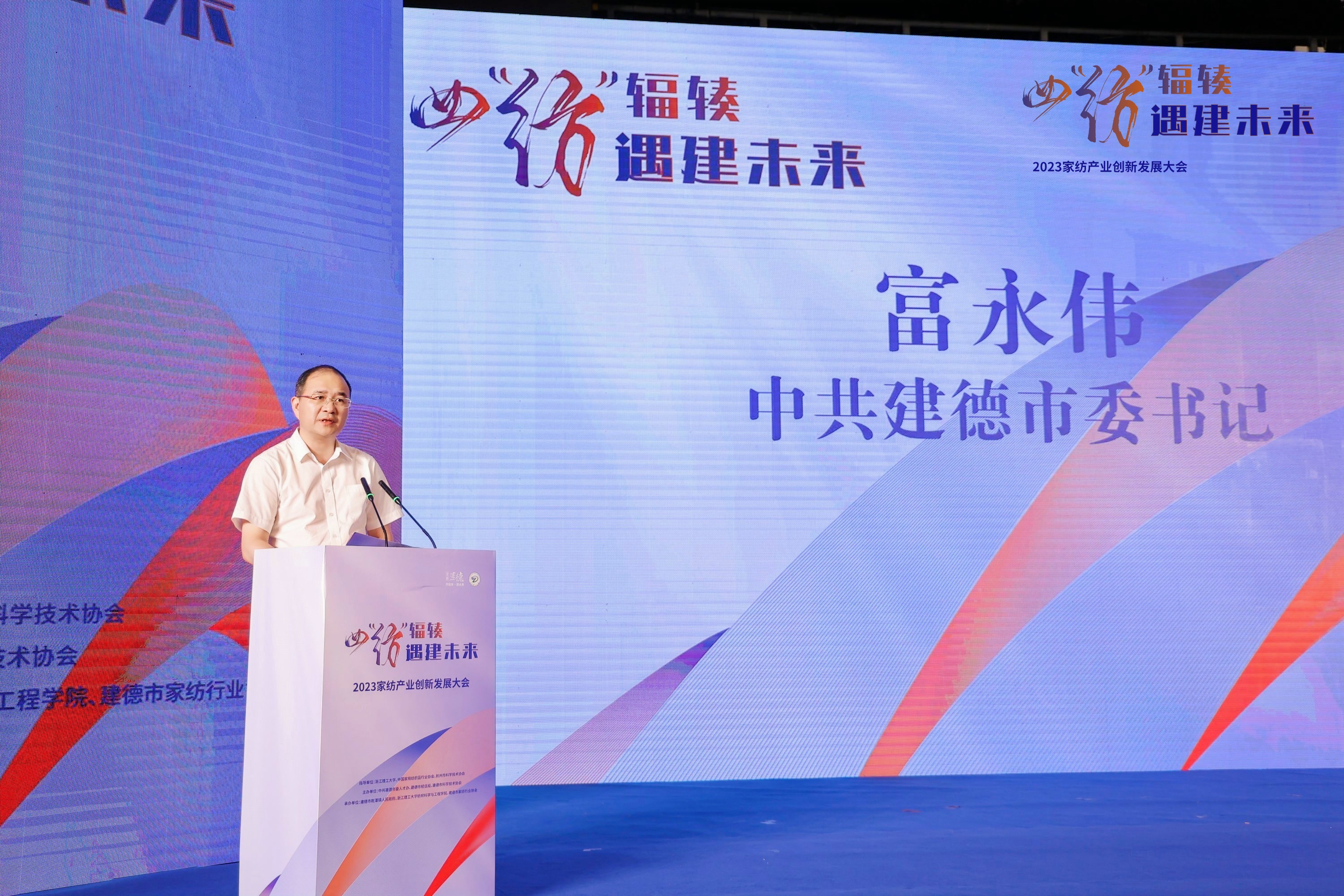2023年7月14日,2023家纺产业创新发展大会在建德市乾潭镇胥江村文化礼堂召开。大会以“四‘纺’辐辏 遇建未来”为主题,政府、高校、协会、企业四方人士齐聚一堂,共商建德家纺产业发展大计。副校长郭玉海出席。