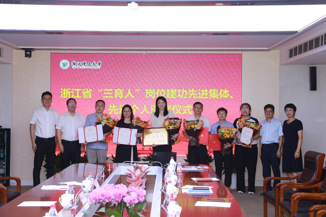 在行政楼215举行的颁奖仪式上,王玉庆代表省教育工会向与会人员和我校全体教师致以节日的问候,并为我校荣获浙江省“三育人”岗位建功先进集体、先进个人颁发奖牌和证书,陶伟华为获奖教师一一递上鲜花。两位领导与获奖单位代表和获奖教师热情握手,勉励他们继续奋发耕耘,为新时代教育事业高质量发展贡献力量。