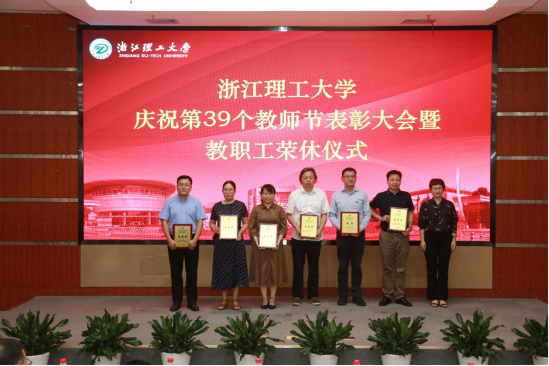 会上,校领导为校先进工作者,华鼎教育贡献奖、华鼎师德师风奖、桑麻奖教金获奖教师颁奖;为我校三十年教育工作者、浙江省任教三十年教师颁发荣誉证书,为新入选校精英教授、高层次人才颁发聘书。