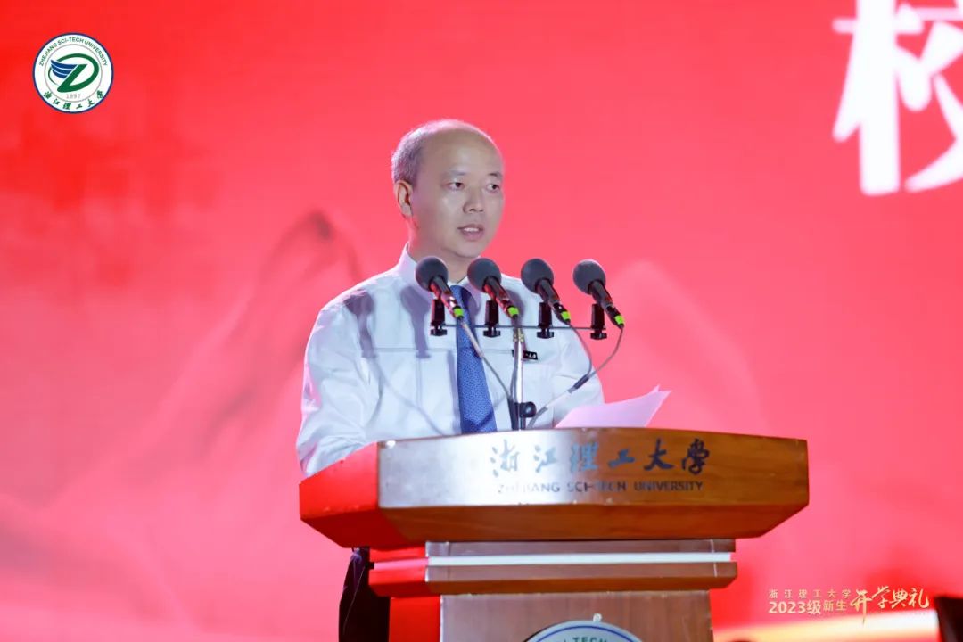 陈文兴代表全校师生员工向全体新生加入浙理大家庭表示热烈欢迎。他表示,mk官方网站_mk(中国)是一所始终与国家共命运、与时代共进步、与未来共发展的具有光荣历史和光明前景的大学,一代代浙理人用实际行动生动诠释了mk官方网站_mk(中国)的爱国心、育人情、报国行。他以蚕的一生为主题,就如何充实自我、探索世界、迎战未来,对全体新生提出了三点期待:第一,在浙理“蚕食鲸吞”式充实自我。只有做好充分的知识储备,掌握求真的技能,才能抓住时代的机遇和挑战,才有可能成为技术的创造者、应用的推动者和社会变革的引领者,为社会进步和人类福祉作出贡献。第二,在浙理“蜕变成长”中探索世界。只有在人与人的联结中,在分享、交流甚至辩论的过程中,才能更丰满自己,真正实现和而不同、美美与共。第三,在浙理“破茧成蝶”后向迎战未来。希望全体新生在大学里,摒弃自我隔绝式的快乐,寻找到一种自驱式、突破性的快乐,并取得成功。希望全体新生走出舒适区、抛弃小确幸,把小我融入大我,投身到更大更壮丽的事业中去。