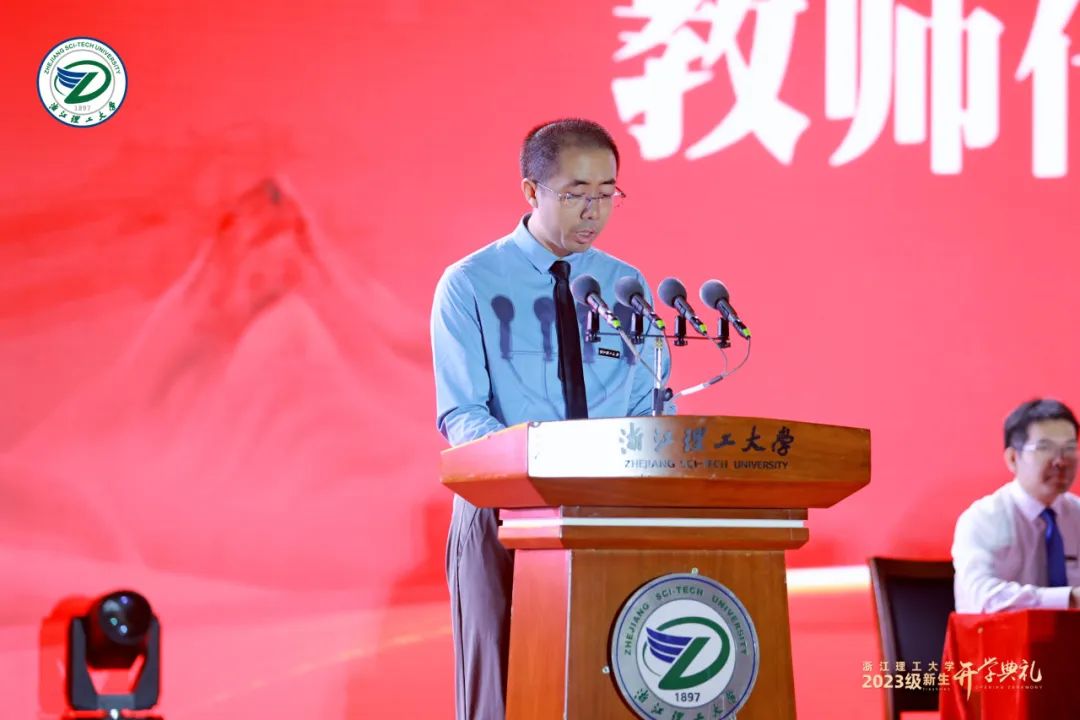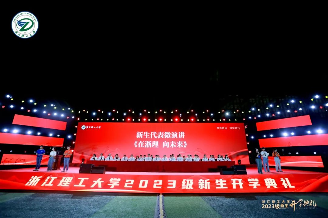由六名本科生、研究生、国际学生新生代表组成的新生宣讲团在典礼上带来微演讲 《在浙理 向未来》,他们讲述了自身向往浙理、最终圆梦浙理的拼搏历程,并发出以热忱之心认识自我、以奋斗之姿突破自我、以笃行之态超越自我的奋斗宣言,鼓励全体新生努力成为高素质的创新创意创业人才,以青春力量助力纺织强国、建设科技强国。