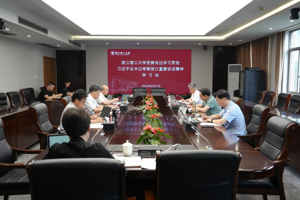 会议强调,要完整准确全面理解把握习近平总书记考察浙江重要讲话精神。要对标落实“在以科技创新塑造发展新优势上走在前列”的要求,牢牢把握“双一流”这个首要任务,强化对接国家战略,服务“315”科技创新体系建设工程,以需求与问题为牵引,探索有组织的科研模式,建好浙江省现代纺织技术创新中心等高能级平台,着力提升服务国家战略和区域经济的硬核科创能力。要对标落实“在推进共同富裕中先行示范”的要求,坚持以人民为中心的发展思想,牢牢把握师生员工对美好生活的向往,提高管理服务水平和解决问题能力,持续推进幸福浙理建设,不断增进民生福祉,努力提升师生员工获得感幸福感。要对标落实“在深化改革、扩大开放上续写新篇”的要求,坚持改革攻坚,正确发挥办学自主权,完善制度建设,深化体制改革,激发学校办学内生活力。要对标落实“在建设中华民族现代文明上积极探索”的要求,大力弘扬伟大建党精神包括红船精神,以及浙江精神,聚焦文化内涵提升,擦亮红色文化育人品牌,守好红色根脉,涵养具有良好育人作用的校园文化,统筹推进传统文化、红色文化、学术文化、清廉文化、校友文化等建设。要对标落实“要坚持和加强党的全面领导、加强和改进党的建设”的要求,深入推进新时代党的建设新的伟大工程,以高质量党建引领学校高质量发展,大力推动党的建设与中心工作深度融合,健全完善干部担当作为激励机制,健全勤廉并重的高素质干部队伍,深化清廉浙理建设,持续优化政治生态。
