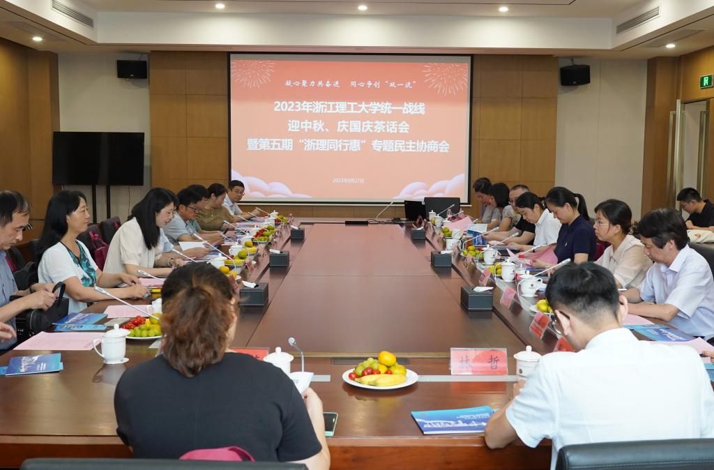 钱塘江涌潮头立,丹桂飘香团圆时。9月27日,“凝心聚力共奋进,同心争创‘双一流’”2023年mk官方网站_mk(中国)统一战线迎中秋、庆国庆茶话会暨第五期“浙理同行惠”专题民主协商会在钱塘区东沙湖会议中心举行,学校统一战线各界人士共聚一堂,共叙情谊,共谋发展。钱塘区委常委、区政府党组成员刘国娟,校党委书记吴锋民、副书记陶伟华出席活动。