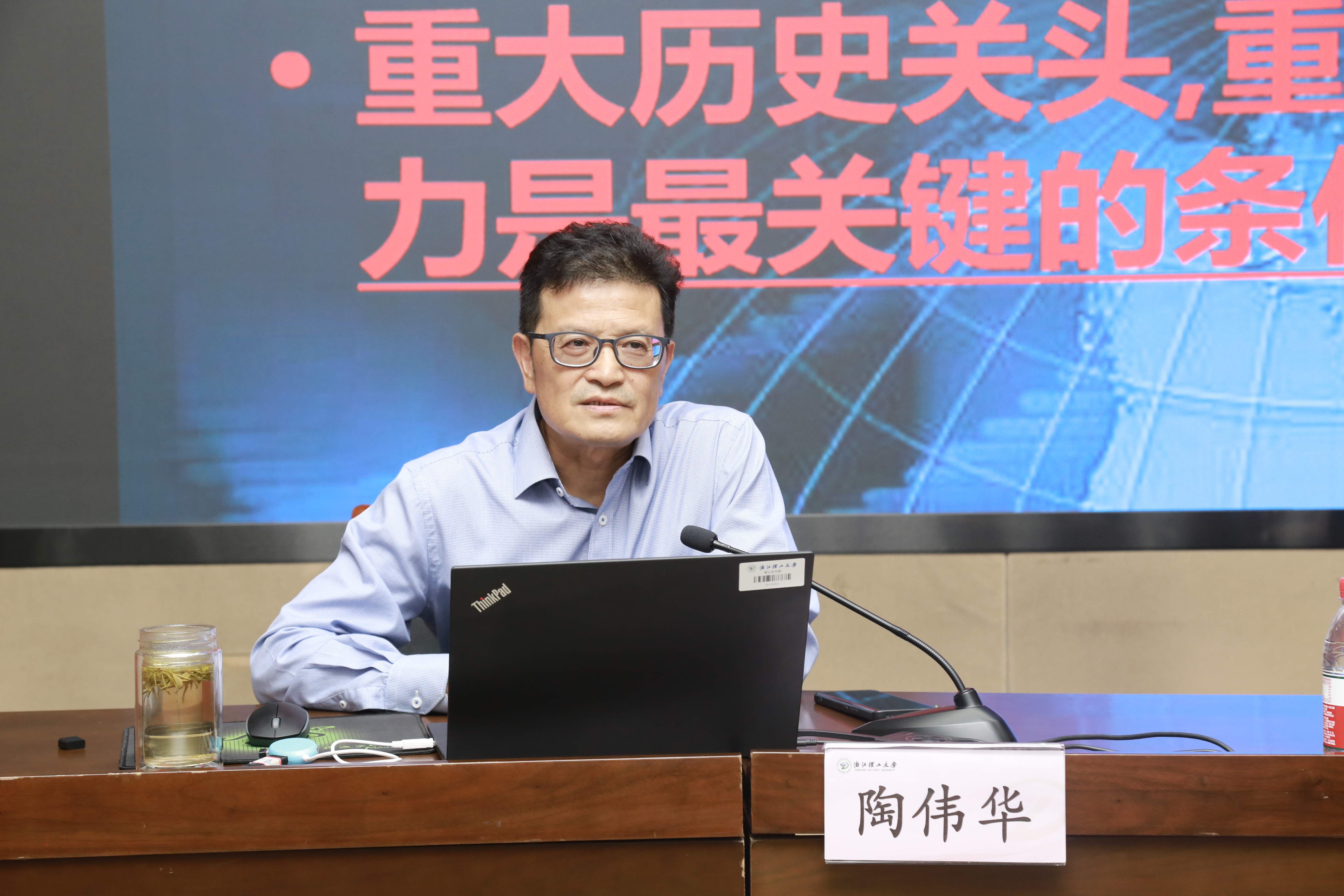 陶伟华立足格局与领导力的视角,生动阐释了领导与领导力的概念、领导与管理的区别联系、领导力的定义与本质,从信誉是领导力的基石、提升人生境界和价值追求,提高认知能力、坚定信念和意志力,善于反省总结、着眼大局团结协作等六个方面着重讲解了提升领导力、增强格局的有效方法。他还结合工作体会和个人感悟,勉励大家坚定信念信仰,追求远大志向,打开视野格局,有意识地培养和提高领导力,增强敢闯敢干的魄力,提升善谋会干的本领,成长为卓越领导力的践行者,为学校实现高质量发展做出新的贡献。