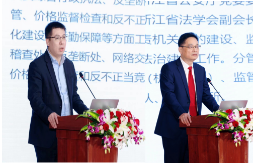 阿登纳基金会(德国)北京代表处首席代表傅佑晗,我校副校长郭玉海教授,浙江省市场监督管理局副局长刘璇和浙江省法学会副会长、浙江省公安厅党委专职副书记王建出席会议并分别为大会致辞。傅佑晗作为德国学者代表基金会预祝会议顺利召开;刘璇介绍了浙江省市场监督管理局开展公平竞争政策和反垄断执法的工作内容和改革成效;王建简要介绍了浙江省法学会的建设情况,表示本次会议既关注国际视野又提出中国方案,将社会主义法治优势转化为竞争治理效能,对建设社会主义市场经济体制具有现实意义。