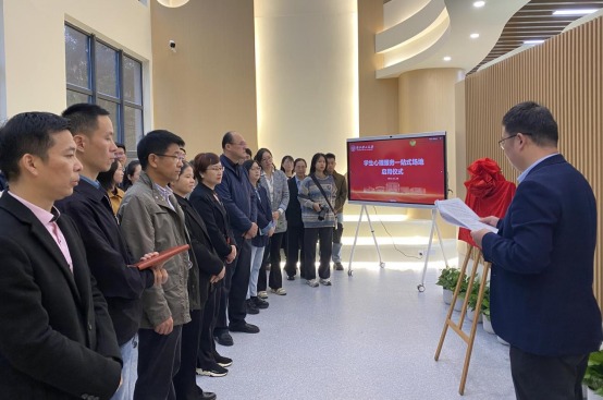 启用仪式上,姚珺、党委学工部部长胡琦为学生心理服务一站式大厅揭牌。