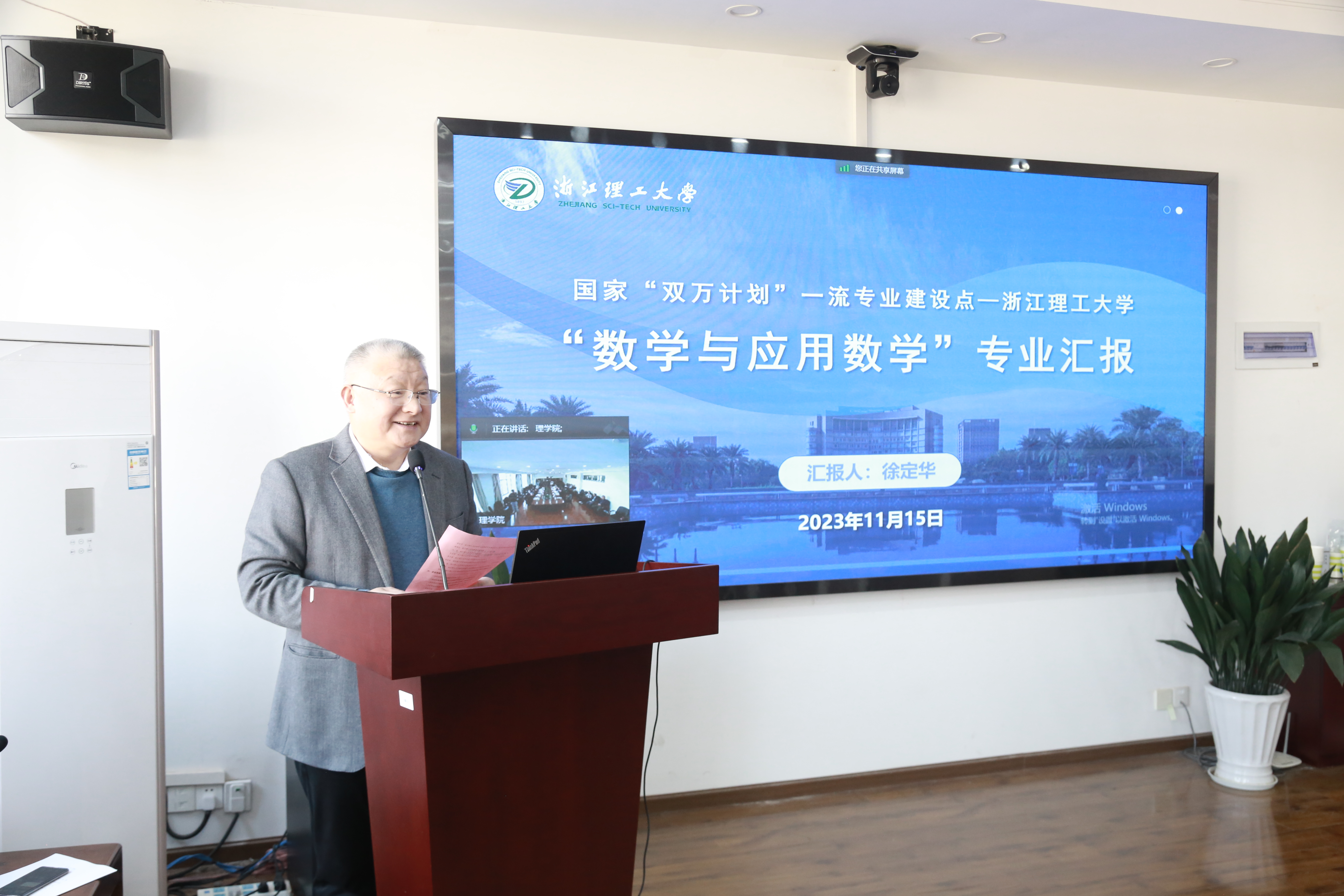 数学与应用数学专业负责人徐定华教授从建设目标、主要建设举措、建设成果及存在问题与改进策略等方面汇报了国家级一流本科专业建设点—数学与应用数学专业建设情况。