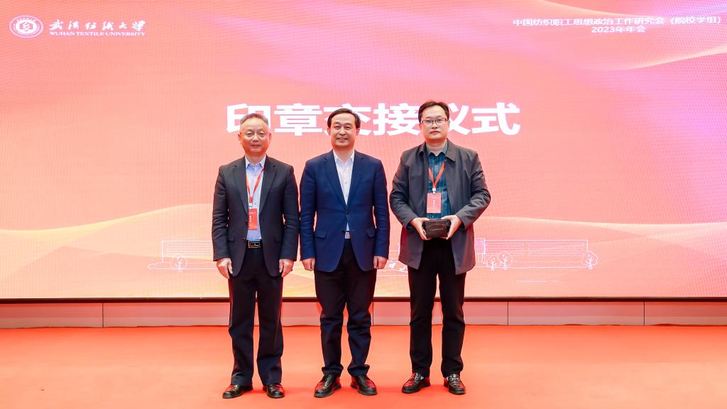 近日,中国纺织职工思想政治工作研究会(院校学组)2023年年会在武汉纺织大学举行,包括北京服装学院、东华大学等16所我国纺织类高等院校的思想政治工作者参加年会。校党委副书记缪鲁加出席。
