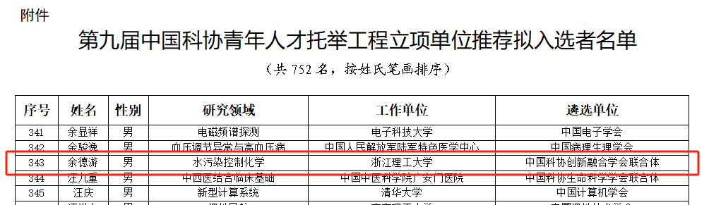 近日,中国科学技术协会公布了第九届“青年人才托举工程”(2023-2025年度)入选者名单,我校纺织科学与工程学院(国际丝绸学院)教师余德游副教授入选。