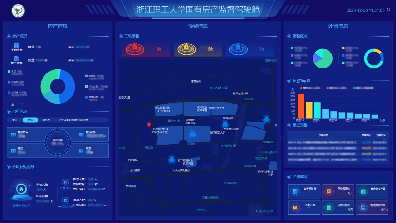 学校根据上级关于加快推进国有房产领域公权力大数据监督应用建设部署,重点围绕高校国有房产在出租、出售、出借、闲置、购买、租赁、合作经营等环节开展大数据监督,建立监督模型,开展数据碰撞,深挖隐性问题,建立健全大数据监督机制,构建高校国有房产监督新格局。学校“国有房产”大数据监督应用入选浙江省2022年教育领域数字化改革创新试点项目。