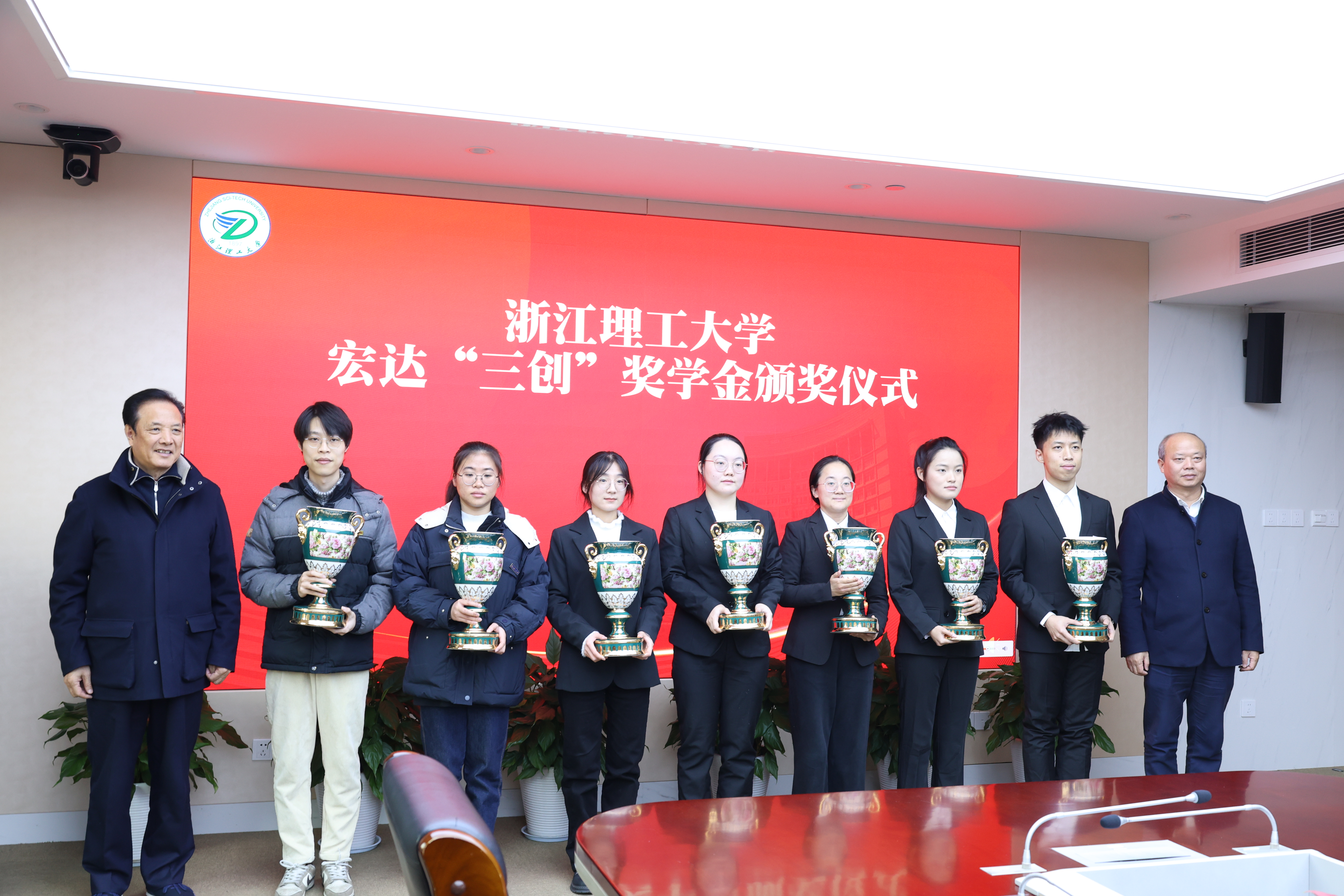 宏达控股集团有关代表和学校学工部、研工部、校友办、纺织科学与工程学院(国际丝绸学院)、材料科学与工程学院、启新学院、创业学院相关负责人及获奖学生出席颁奖仪式。颁奖仪式由学工部部长胡琦主持。