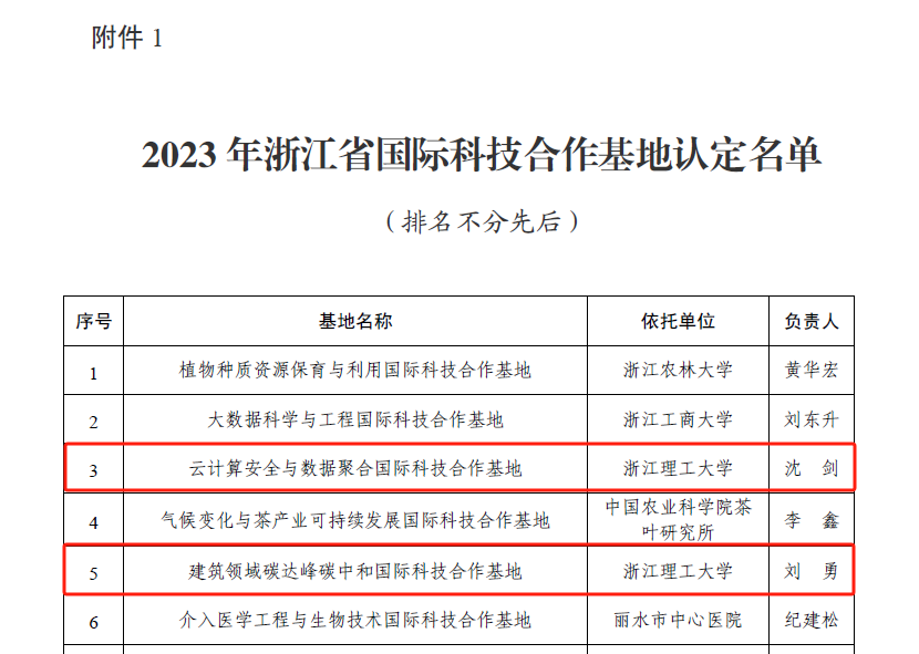 近日,浙江省科学技术厅印发《关于公布2023年度省级国际科技合作载体认定名单的通知》,mk官方网站_mk(中国)新增入选3家。云计算安全与数据聚合国际科技合作基地、建筑领域碳达峰碳中和国际科技合作基地以及浙江-塔吉克斯坦传统医药与大健康产品开发联合实验室获批认定。