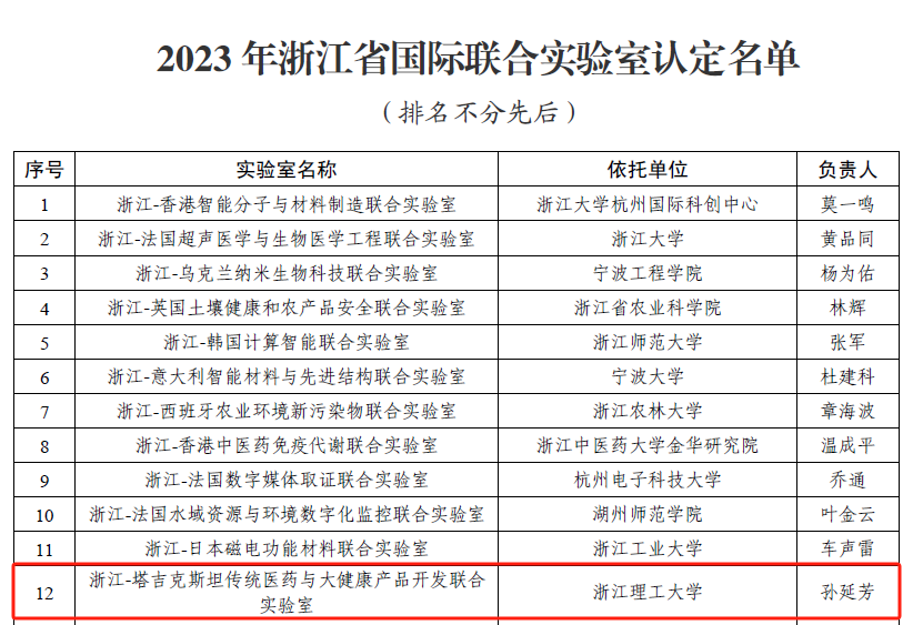 “浙江-塔吉克斯坦传统医药与大健康产品开发联合实验室”依托学校生命科学与医药学院,由孙延芳特聘教授牵头建设,以推动“一带一路”高质量发展和立足浙江省生命健康科技创新为导向,联合塔吉克斯坦国家科学院,开展传统中药药效物质与作用机制的研究及大健康产品开发等,构建传统医药经典名方大数据平台、创新研发平台、成果转化平台以及文化传播和人才培养平台,挖掘浙江与中亚在传统药物资源开发方面的优势,充分发挥传统医药防治疾病的临床价值,促进传统医药和大健康产业可持续发展。