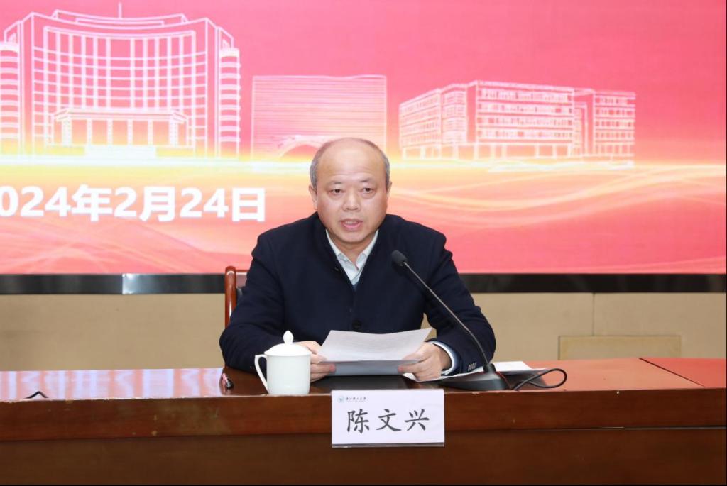 陈文兴回顾了2023年学校的主要工作。他指出,学校打造标志成果,开拓了事业发展新格局;狠抓核心业务,实现了人才引培新发展;力主创新深化,提升了科研和社会服务新成效;牢记师生为本,提高了综合保障新水平。