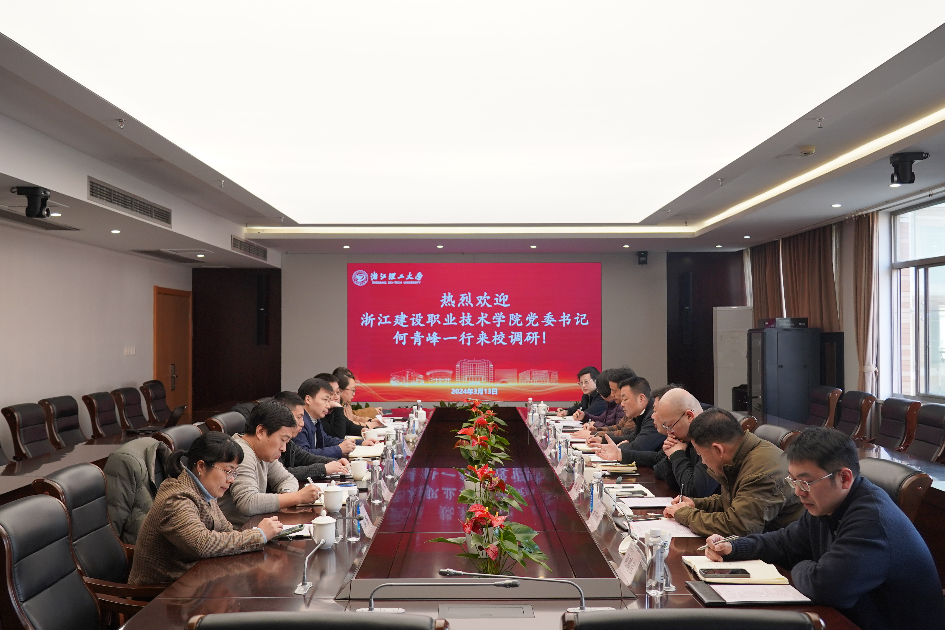 3月13日下午,浙江建设职业技术学院党委书记何青峰一行来我校调研。校党委书记赵全军会见了何青峰一行,党委委员、副校长陈爱喜出席交流座谈会。