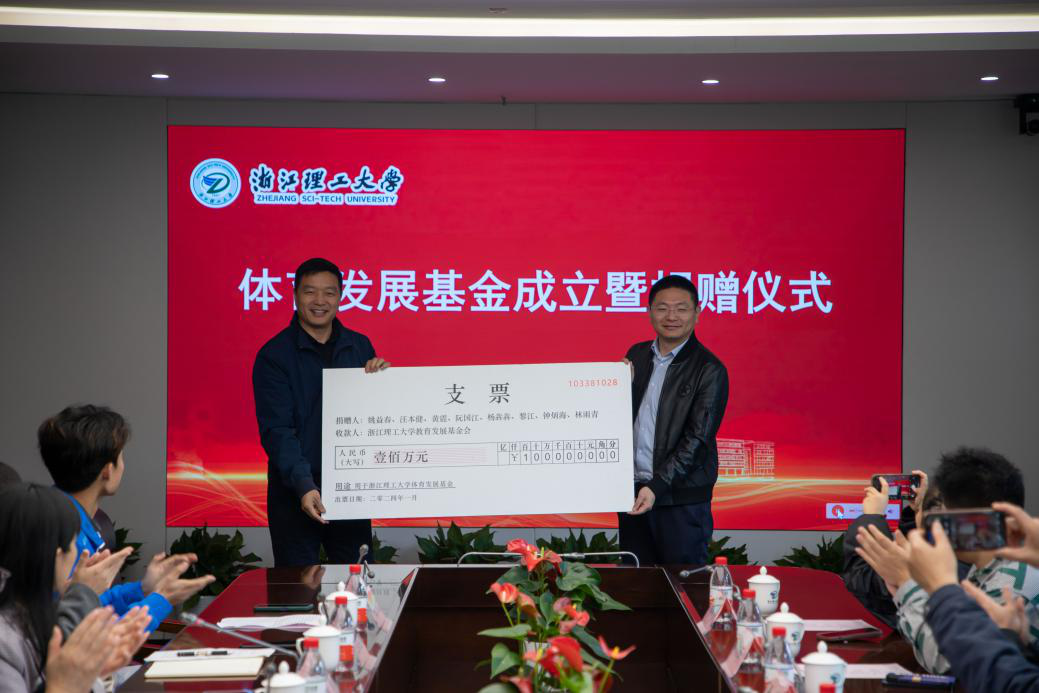 4月9日上午,mk官方网站_mk(中国)体育发展基金成立暨捐赠仪式在下沙校区行政楼308会议室隆重举行。校党委副书记缪鲁加,杭州校友会会长叶文,捐赠校友代表张文强、黄震、阮国江、钟炳海、杨犇犇、林雨青出席仪式。仪式由对外联络办公室(校友办)主任陈艳主持。