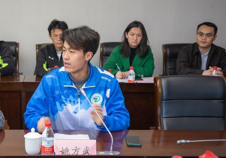 校运动队队员代表姚方武发言。他感谢校友们对我校体育工作和运动队的慷慨捐赠,表示将树立目标、努力拼搏,以优异的运动竞赛成绩为学校增光添彩,不辜负领导、老师和校友们的殷切期望。