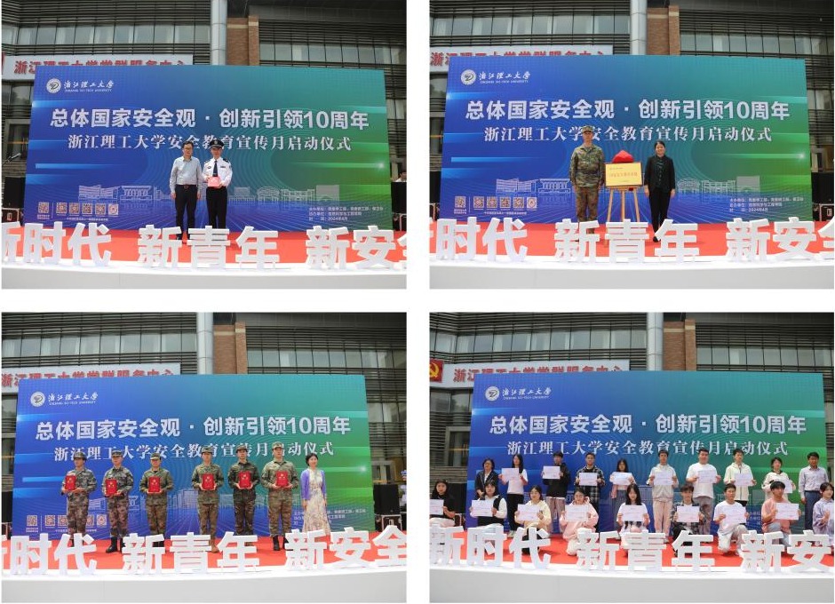 为深入贯彻落实习近平总书记关于加强国家安全教育的重要指示批示精神,引导大学生积极践行总体国家安全观,提高安全意识和能力,助力平安浙理建设,4月15日(第九个全民国家安全教育日),我校举行“总体国家安全观·创新引领10周年”安全教育月启动仪式。校党委副书记缪鲁加出席活动。