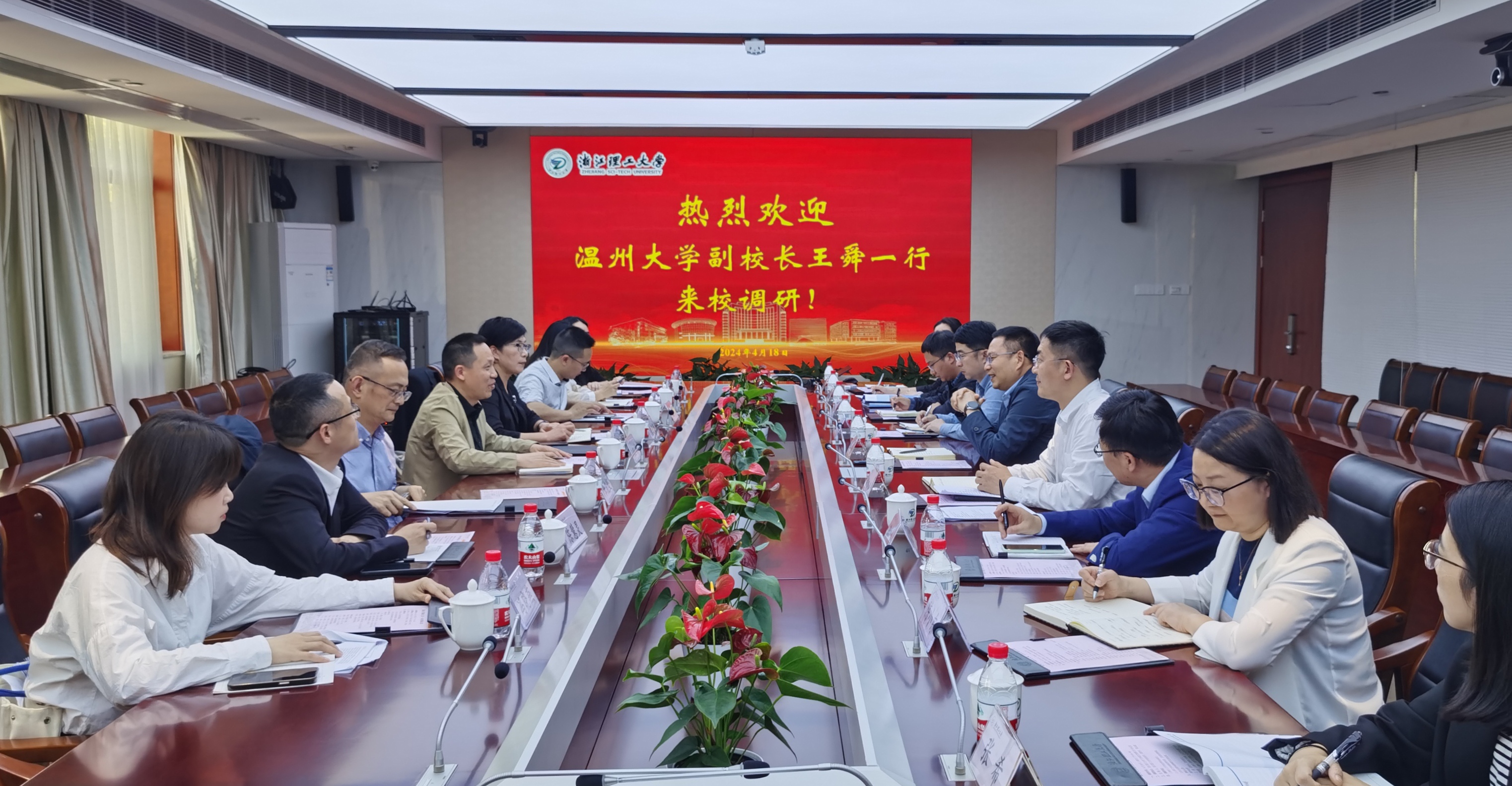 4月18日,温州大学党委委员、副校长王舜一行来校调研人事人才工作。校党委委员、副校长周必彧出席并主持会议。