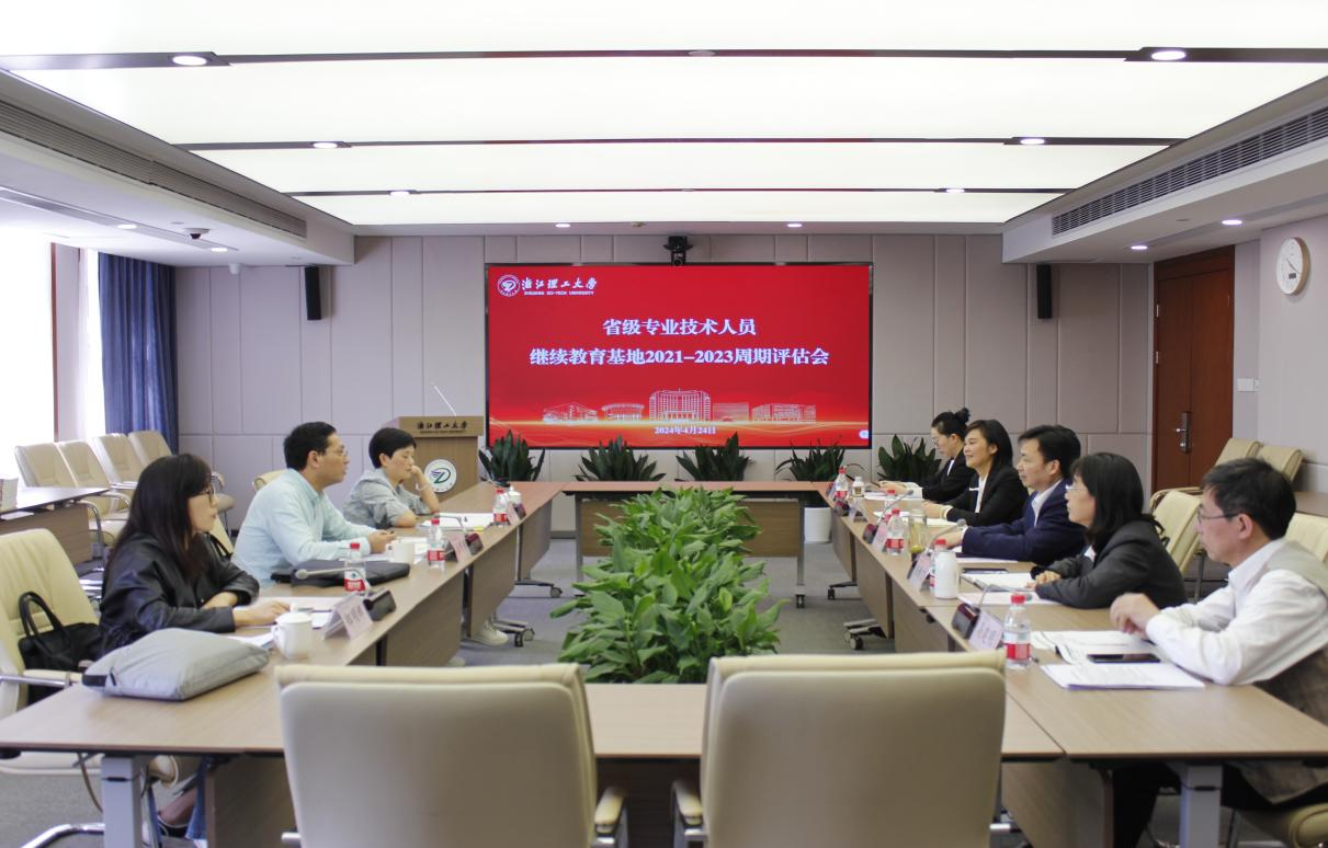 4月24日上午,省级专业技术人员继续教育基地周期评估现场考核组莅临我校,对我校省级专业技术人员继续教育基地开展考核。本次考核由浙江省人力社保专技处二级调研员朱明强带队。校党委委员、副校长陈爱喜出席会议。