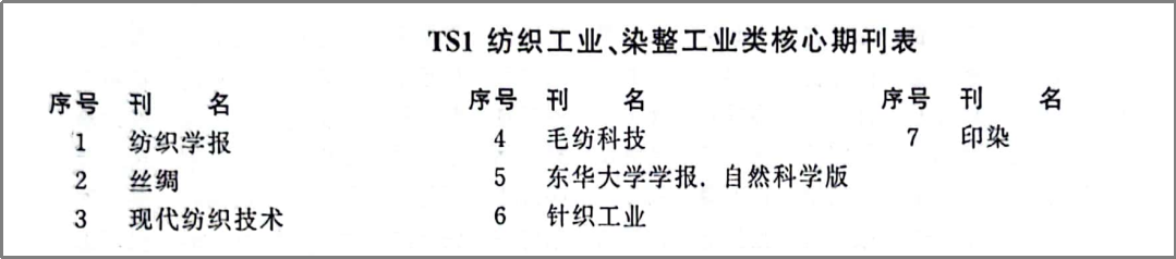 据悉,《中文核心期刊要目总览》2023年版(即第10版)从2021年10月开始研究,研究工作由北京大学图书馆主持,共32个单位的148位专家和工作人员参加了该项工作,全国各地9473位学科专家参加了核心期刊表的评审工作。经过定量筛选和专家定性评审,从我国正在出版的中文期刊中评选出1987种核心期刊。其中,2023年版纺织工业、染整工业类共评选出7种核心期刊,较2020年版减少了2种。