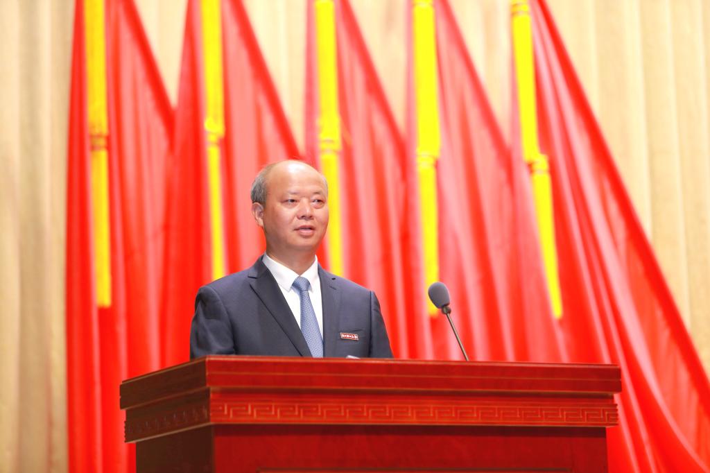 在预备会通过大会主要议题和主席团成员名单后,学校第五届教职工代表大会暨工会会员代表大会第四次会议在雄壮的国歌声中开幕。校长陈文兴向大会作题为《高起点开局 高质量发展 奋力谱写高水平大学建设新篇章》的工作报告。