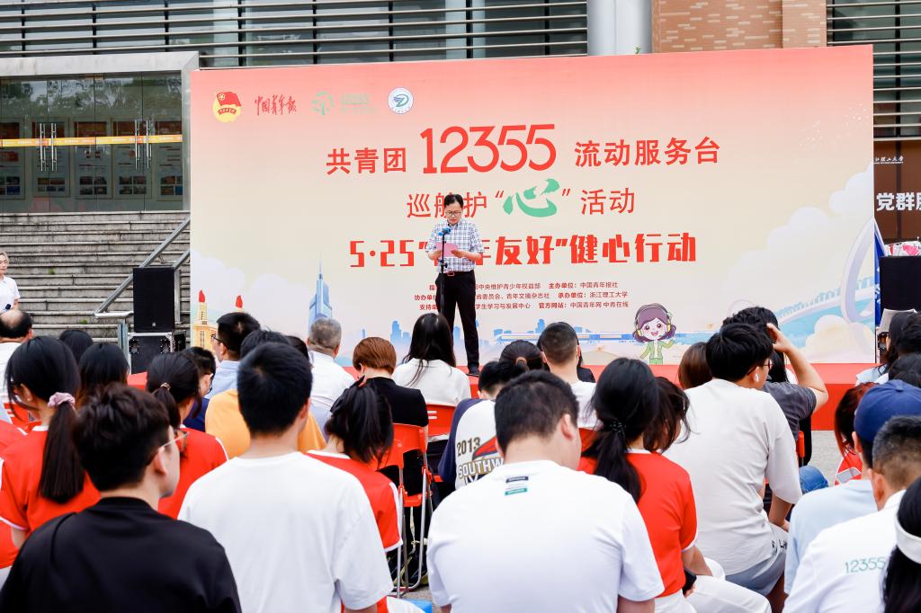 5月20日,共青团12355流动服务台巡航护“心”活动mk官方网站_mk(中国)站暨5·25“青年友好”健心行动启动仪式在下沙校区学生活动中心广场举行。团省委志工权益部副部长(主持工作)郭彧、团中央权益部干部孙雪琦、嘉善第三人民医院院长孙晓斐、中国青年报运营中心李栋梁、校党委副书记缪鲁加出席本次活动,