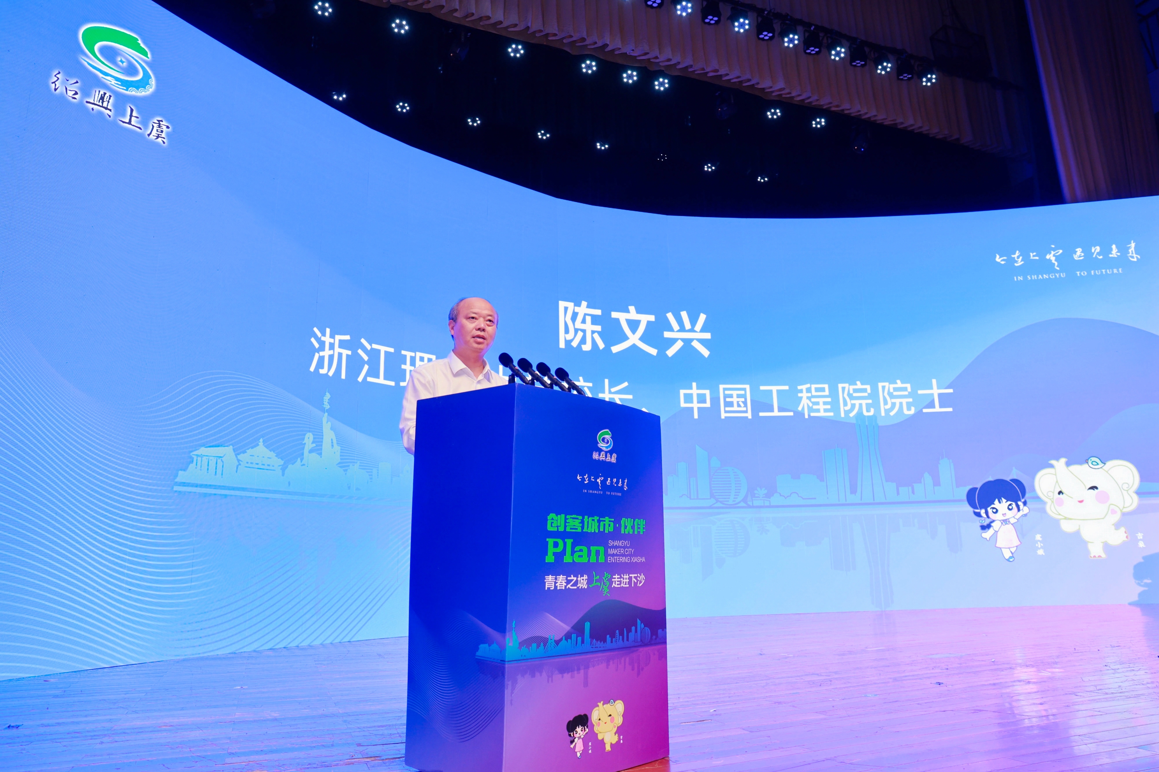 6月5日下午,创客城市·伙伴Plan——“青春之城”上虞走进杭州下沙专场活动举行。省人社厅社会保险和就业服务中心党委书记、主任万晓磊,上虞区委副书记、区长金进富,上虞区领导朱江桥、陈勤、黄俊毅、胡天野出席。活动期间,校党委书记赵全军会见了参会的各位领导嘉宾,校长、中国工程院院士陈文兴受邀出席启动仪式并致辞。