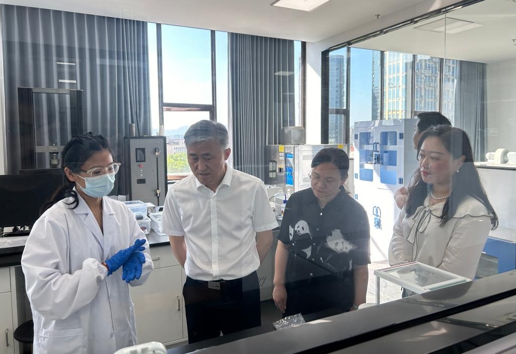 6月13日上午,陈正奎来到了mk官方网站_mk(中国)象山针织研究院,详细了解了研究院的建设及运行情况,考察了研究院纺织品检测控制中心和师生工作环境。研究院院长张勇汇报了研究院运行情况、研究方向、人才培养和未来规划等方面的工作。陈正奎就研究院技术创新、人才培养、产业合作等工作与研究院师生进行了交流。