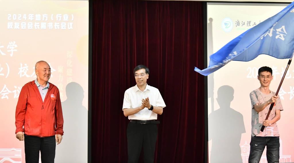 会议还举行了会旗交接仪式,会旗交接至下届承办单位上海校友会手上。上海校友会秘书长方跃代表上海校友会接过会旗。