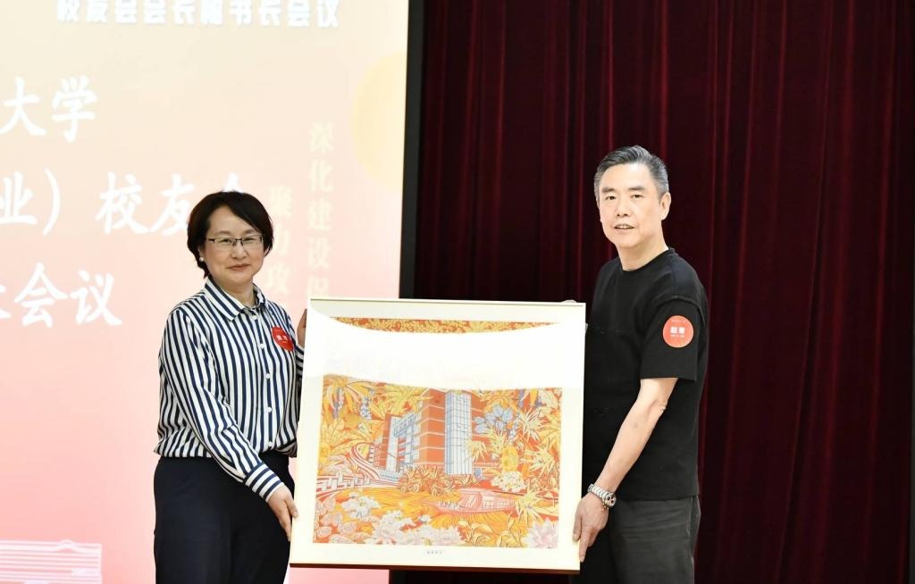 随后举行了特别的感谢仪式。姚珺为本次会议承办方深圳校友会赠送了一份感谢礼:“丝享浙理”丝绸相框,该幅作品融入下沙校区、科技兴纺、红船精神等元素。