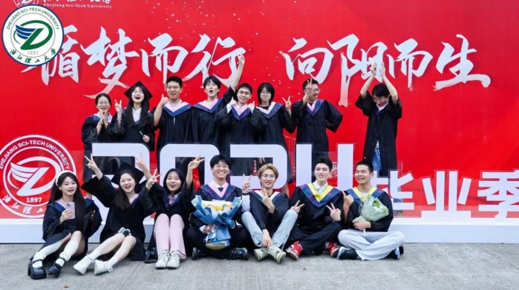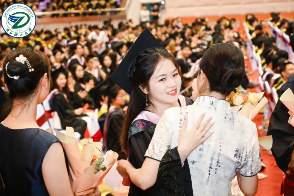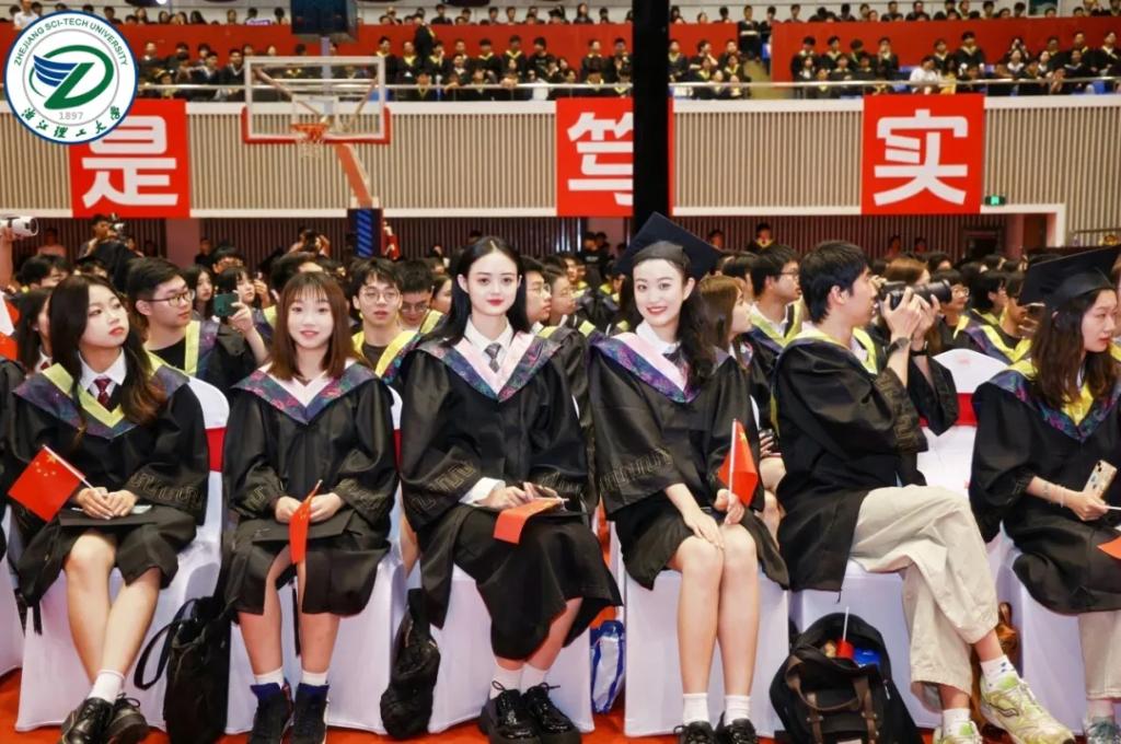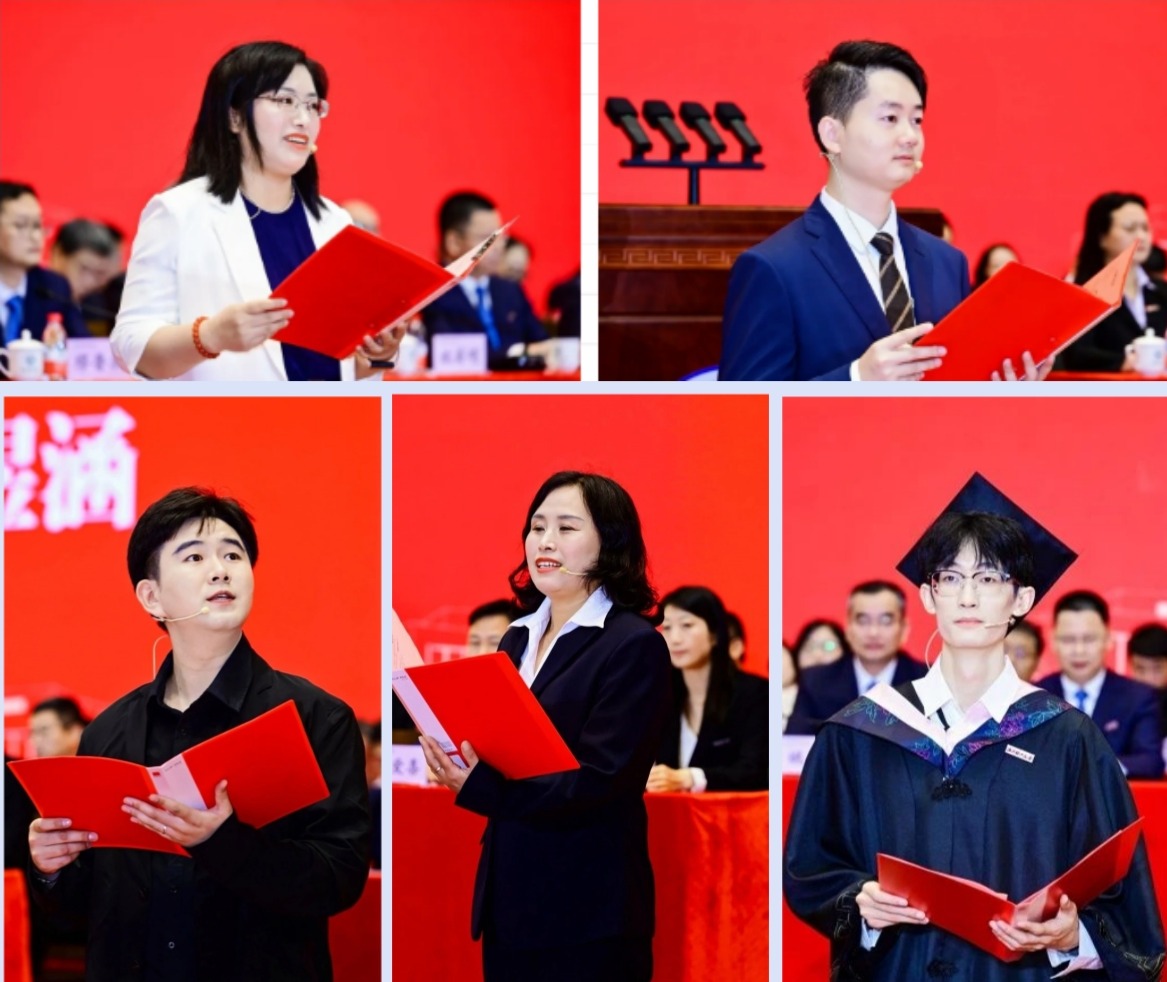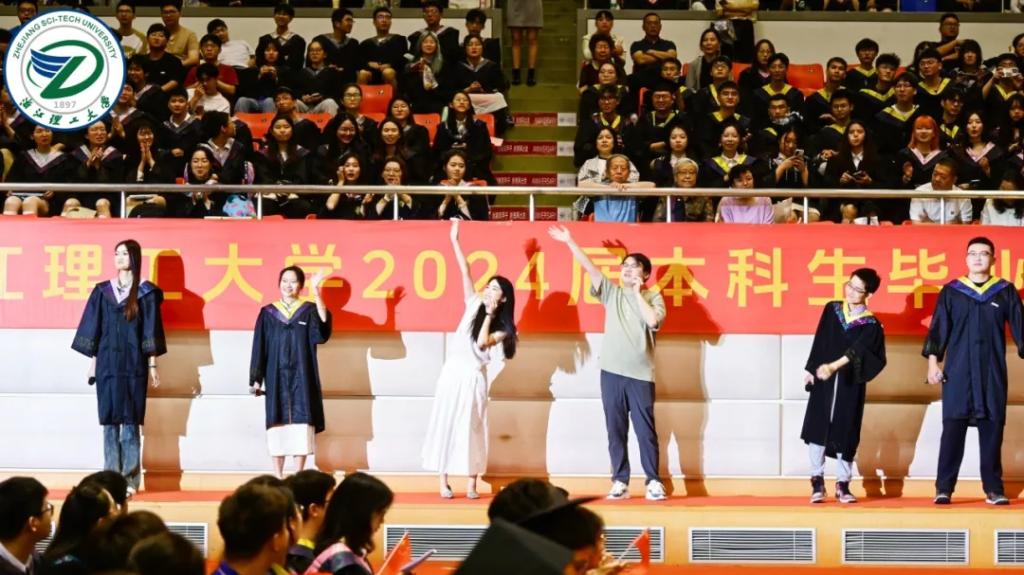 典礼上,教师代表王艳娟、校友代表林浙南、辅导员代表张煜涵、宿管员代表薛丽梅和毕业生代表周子贺联袂带来毕业主题朗诵《今在浙理 相约未来》。王艳娟由衷祝愿全体毕业生有着灿烂且生根的人生理想,鼓励毕业生把握时代脉搏、成就出彩人生,母校永远是浙理人停靠的港湾。林浙南期盼学弟学妹们将浙理的所有美好打包,带着“浙理校友”光荣而响亮的身份,奔赴下一程山海。张煜涵回忆了与同学们一同经历的点滴故事,勉励全体毕业生用创新创意创业的态度去尽情拥抱世界、迎接未来。薛丽梅向毕业生们送上祝福,叮嘱同学们带好钥匙、照顾好自己,浙理永远为毕业生敞开家的大门。周子贺向全体浙理师长表达了深切的感激,他号召全体浙理学子与母校同路,与时代同行,在青春的赛道上跑出当代青年的最好成绩。