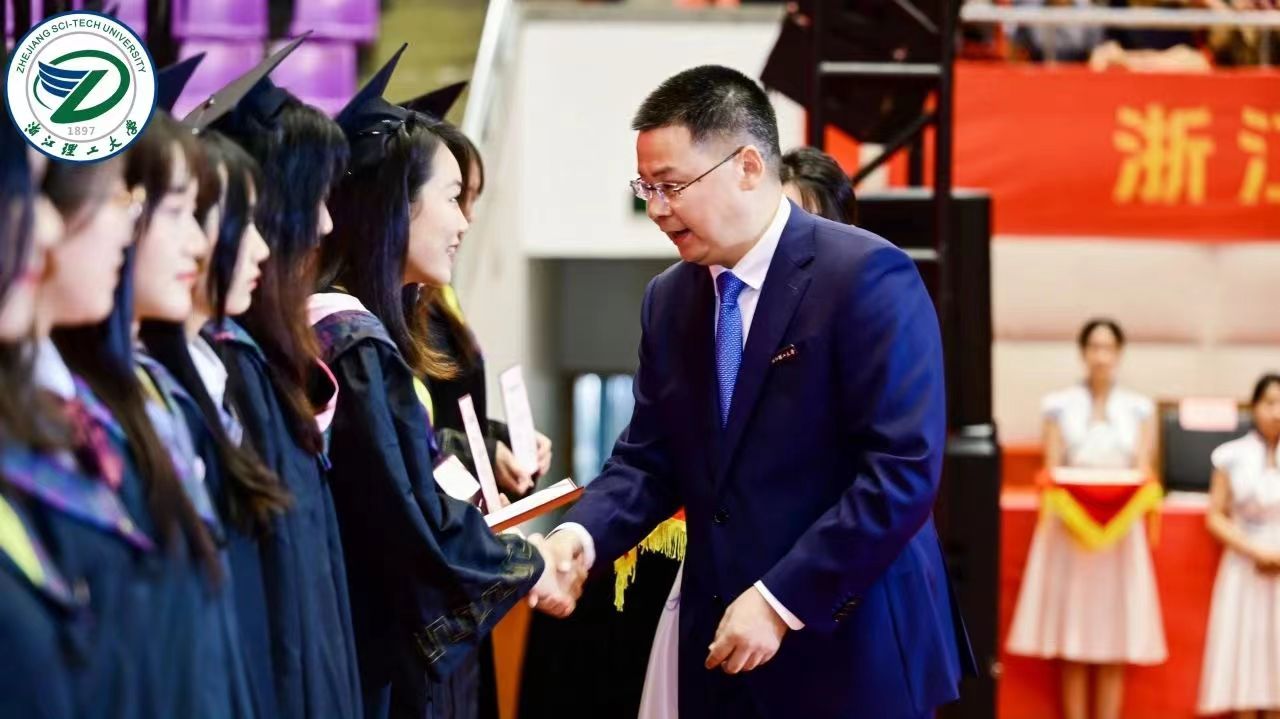 陈文兴为毕业生致辞。他首先代表学校向所有圆满完成本科学业的同学们致以热烈的祝贺,并对悉心培育和指导同学们的家长与老师致以诚挚的敬意和衷心的感谢。他向全体毕业生提出了三点希望。一是心怀山海、眼有星辰。作为新时代青年,要胸怀“国之大者”,在服务社会、奉献国家的奋斗历程中,实现自己的人生价值,奋力书写为中国式现代化挺膺担当的青春篇章。二是敢闯敢试、一往无前。希望同学们不卑不亢、无畏无惧,拥有风雨无阻的勇气、逢山开路的担当、开拓进取的智慧,用实际行动续写浙理人的奋斗华章。三是拥抱变化、久久为功。要继承发扬“求知求实、创新创业”的优良传统,始终保持好奇心,不人云亦云、不坐井观天,要努力站上世界的屋脊见自己、见天地、见众生。