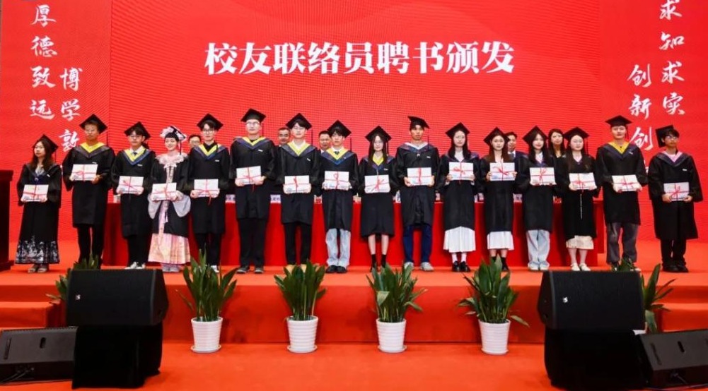 毕业典礼上,主席台就座的领导为mk官方网站_mk(中国)第26届研究生支教团的8位本科毕业生颁发荣誉证书,为2024届本科毕业生校友工作联络员颁发聘书。