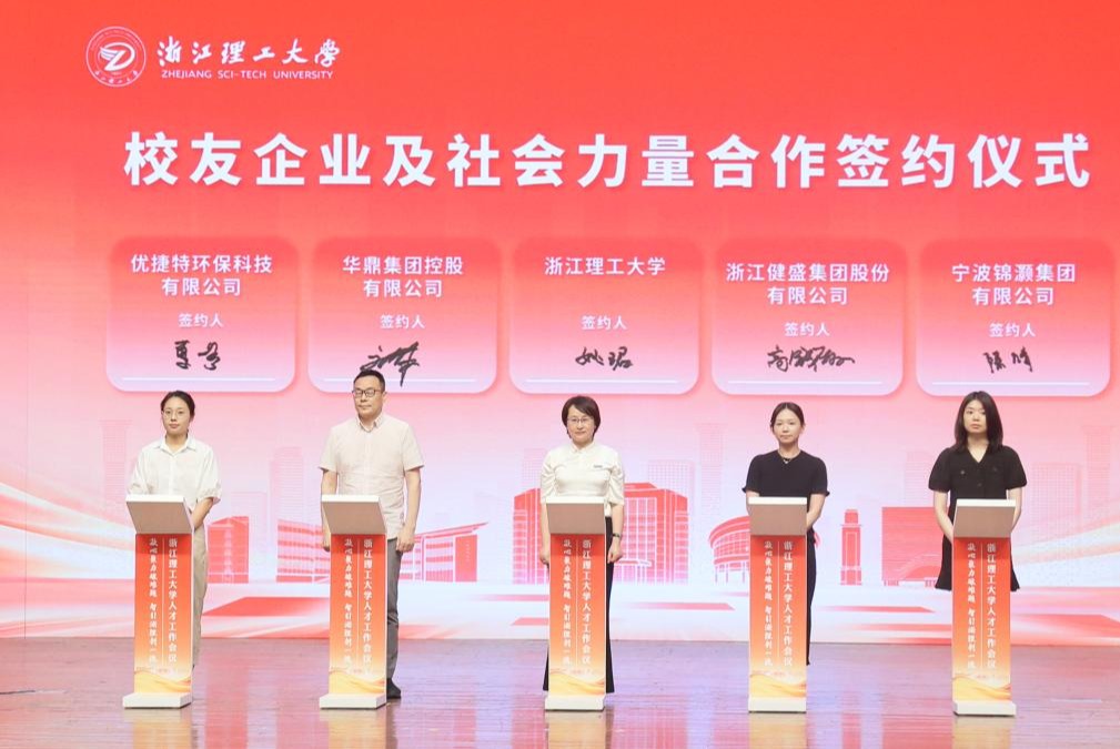 会上还进行了聘任及签约仪式。赵全军、陈文兴、姚菊明分别为校学术院长、“杰出教授”“精英教授”及引才大使颁发聘书。“杰出教授”代表沈剑发言,他结合切身感受表达了与学校、与学院共创人才工作新局面的信念与行动。副书记姚珺与一直关心支持学校“三支队伍”建设的校友企业代表进行签约。人事处处长(人才办主任)杨晓刚代表学校与人才服务机构签署引才战略合作协议,进一步引才拓源、提质增效。