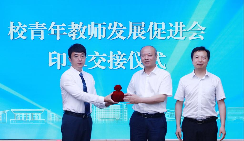 随后,举行了青促会印章交接仪式。奉小斌把印章交还给陈文兴校长,陈文兴将印章交给沈剑,沈剑接印,完成了新老两届青促会的交接。