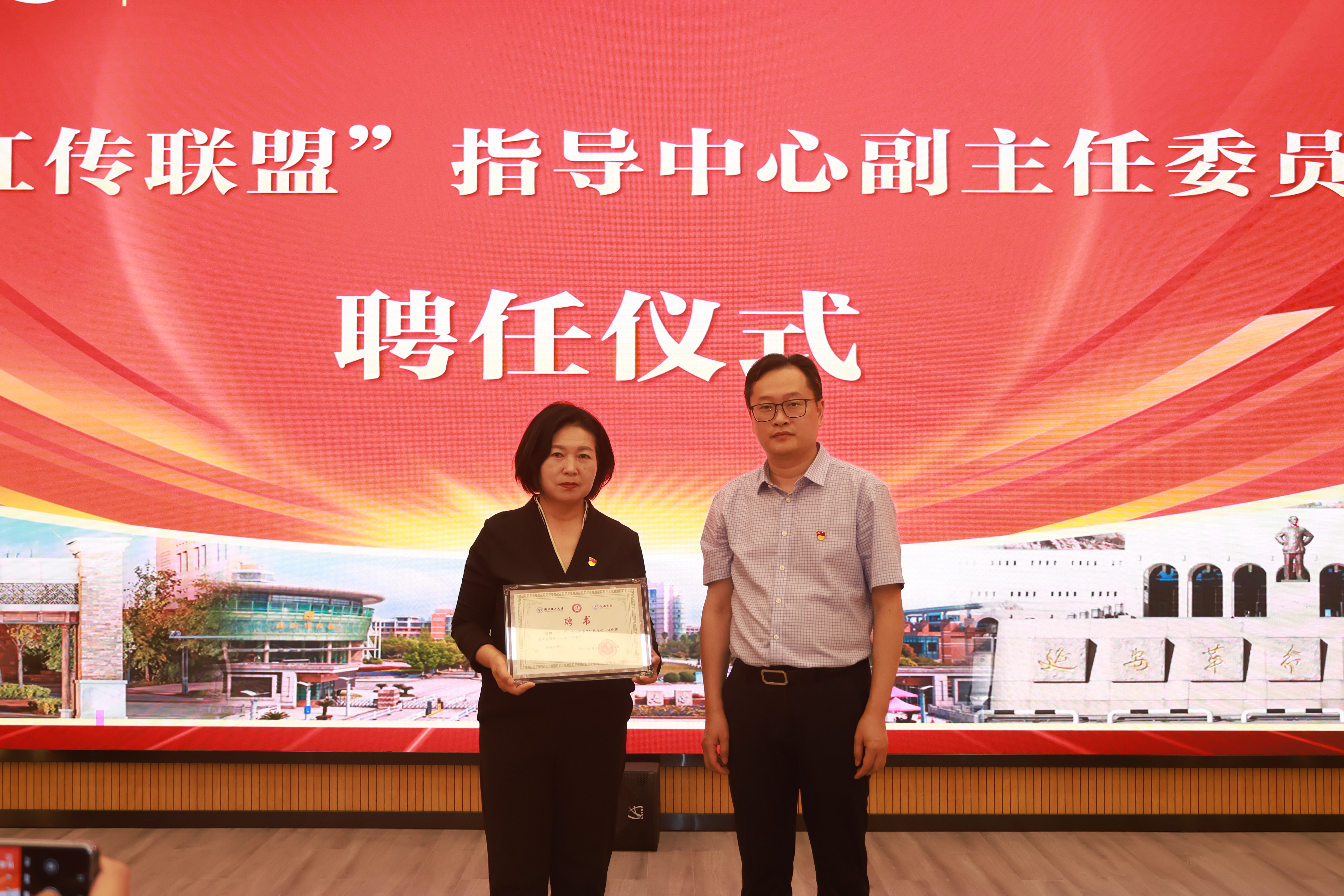 活动现场举行了“红传联盟”中心专家委员会聘任仪式,缪鲁加为刘妮颁发中心副主任委员聘书。