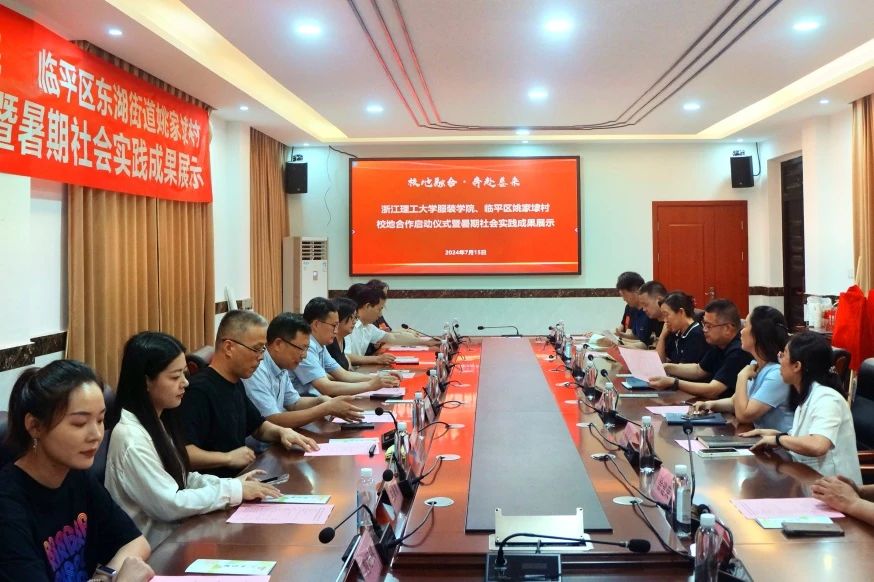 7月15日下午,缪鲁加一行来到杭州市临平区姚家埭村党群服务中心,参加mk官方网站_mk(中国)服装学院、临平区东湖街道姚家埭村校地合作启动仪式暨暑期社会实践成果展示活动。东湖街道党工委书记姚建华致辞。他表示此次合作标志着mk官方网站_mk(中国)和东湖街道“产教融合、共富建设”又迈上了新的台阶。缪鲁加感谢临平区东湖街道对学校建设和发展的支持,对学院实践师生们的付出表示慰问。他勉励师生们,让实践活动融在日常,融在经常,在双方的持续合作中,有收获、有成长、有产出。