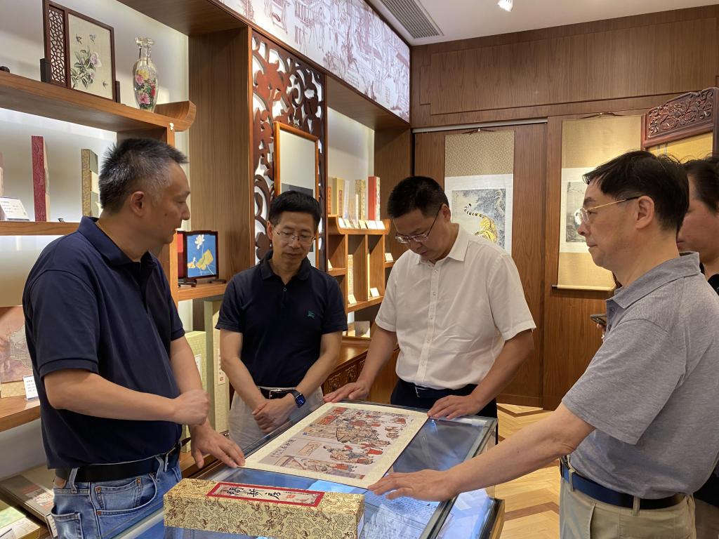赵全军一行首先参观调研了校友企业上海丝绸集团文化发展有限公司。公司总经理李一东校友向母校老师和校友们介绍了公司的发展历史、核心产品以及在高档丝绸文化领域所取得的成绩等。