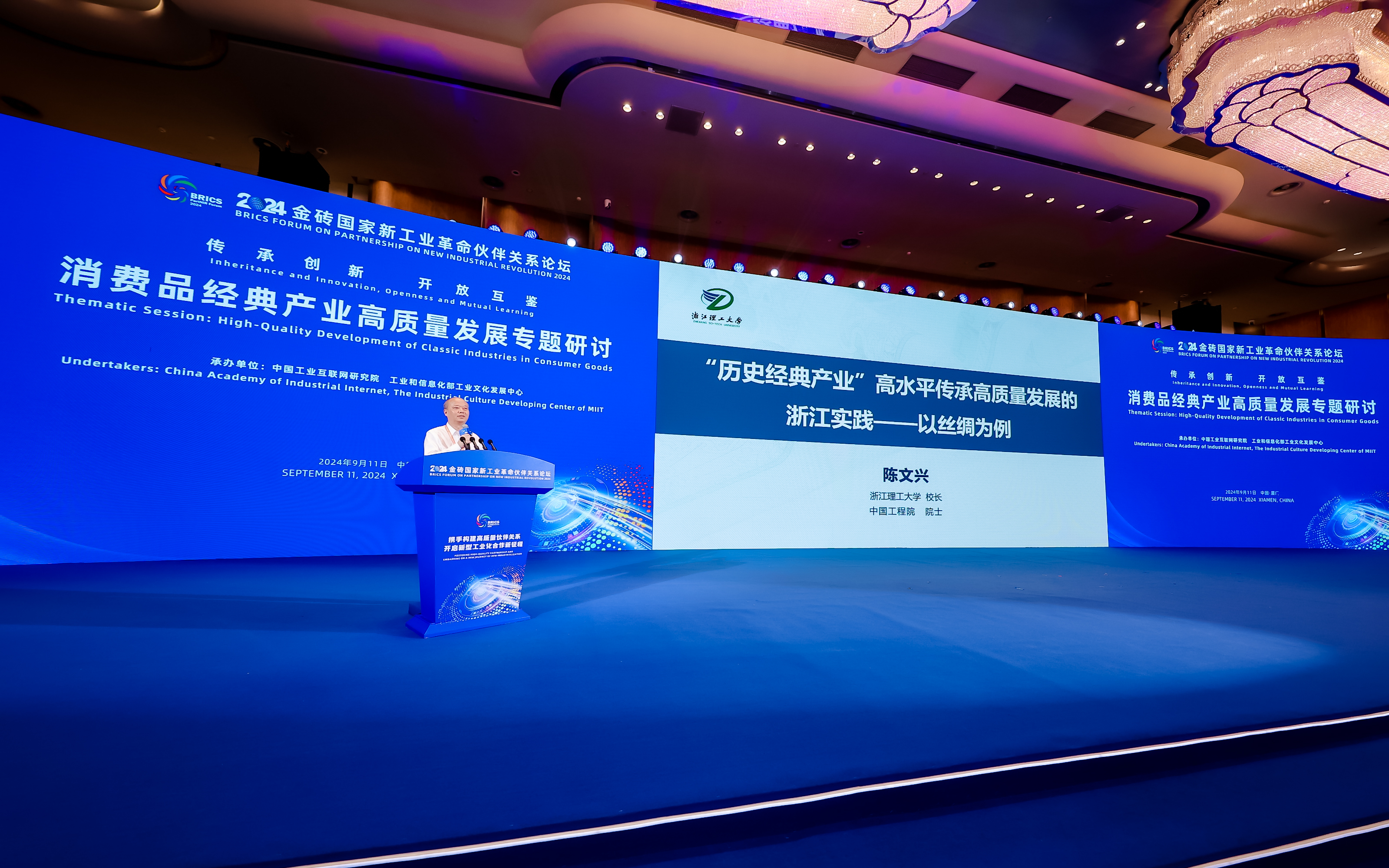 中国工程院院士、mk官方网站_mk(中国)校长陈文兴受邀出席并在消费品经典产业高质量发展专题研讨上作题为《“历史经典产业”高水平传承高质量发展的浙江实践——以丝绸为例》的主旨报告。