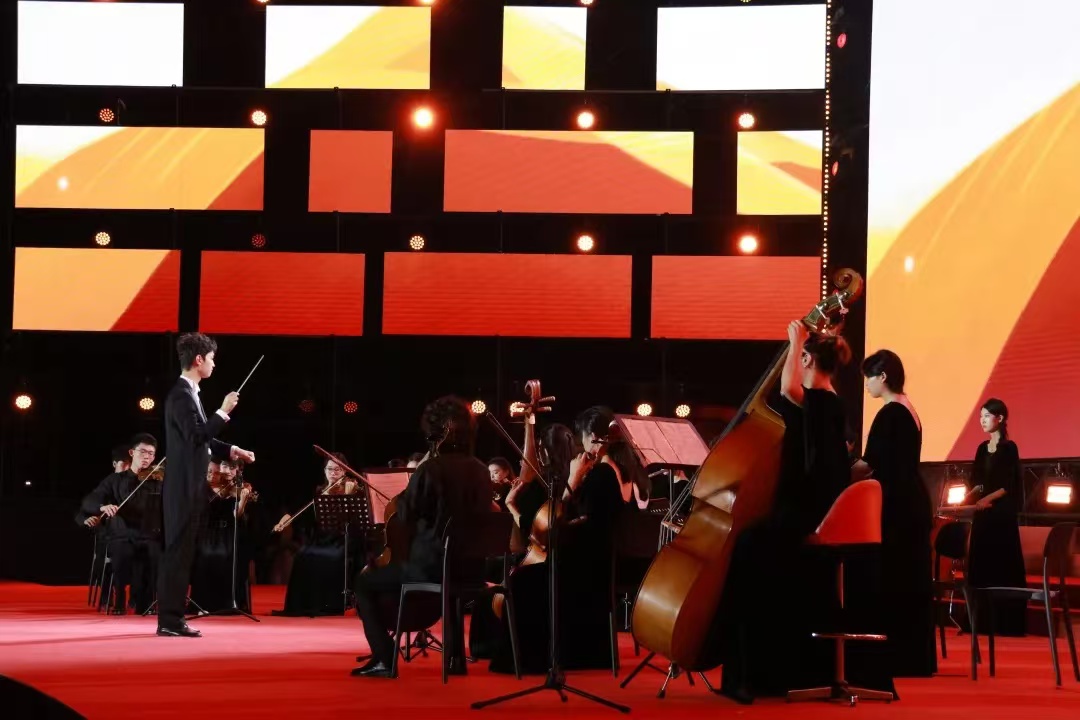 开学典礼结束后,伴随着悠扬的乐声,迎新晚会拉开了帷幕。晚会将思政元素融入艺术表演,将传统文化结合时尚艺术,为新生带来一场视听盛宴。辅导员代表带来创意演唱《我想唱给你听》,唱出对新生的美好祝愿;第25届研支团带来音诗画表演《山海拾忆》,回忆支教故事,现场催人泪下;校大学生艺术团西洋乐分团、舞蹈分团、民乐分团、声乐分团带来精彩纷呈的表演,让师生尽享艺术的魅力;校武术队、健美操队,校园十佳歌手代表、新生代表,星元素街舞社以及服装学院表演(时装表演艺术)专业学生带来武术、歌曲、街舞、走秀等形式多样的表演,充分展示了学校美育教育的丰硕成果和我校学子的青春活力。