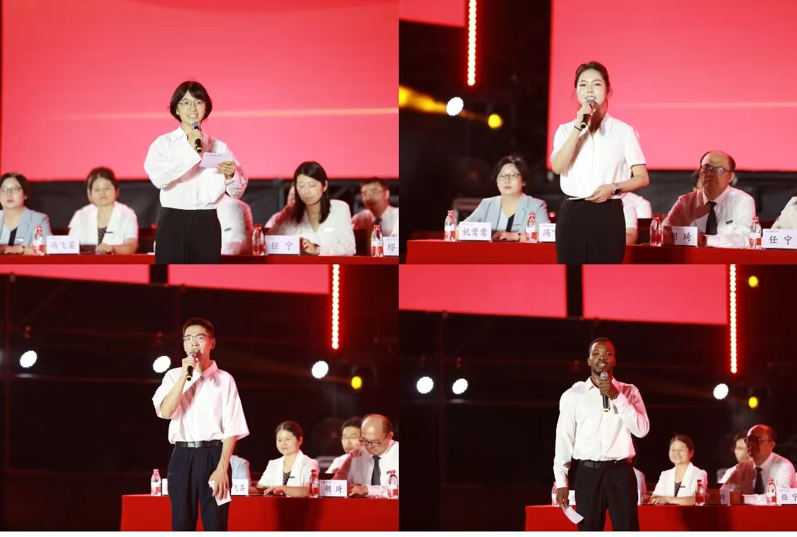 法政学院、史量才新闻与传播学院本科生陈璟仪,理学院硕士研究生钟渊,材料科学与工程学院博士研究生邓烨丰,艺术与设计学院贝宁籍硕士国际研究生杰拉德(LADEKAN OKUOLA ZADIG GERARD)作为学生代表带来微演讲。他们讲述了自己的奋斗历程和圆梦浙理的欣喜,也表达了将继续逐梦浙理,努力为社会发展、祖国建设贡献青春力量的心声。
