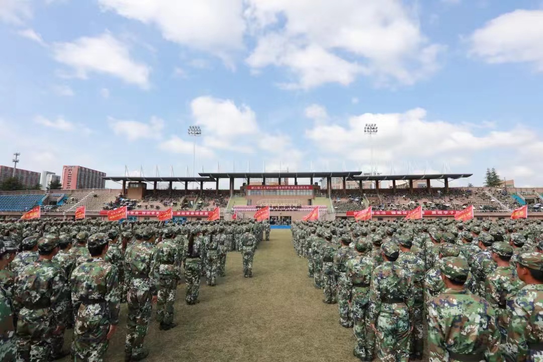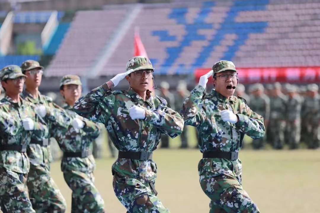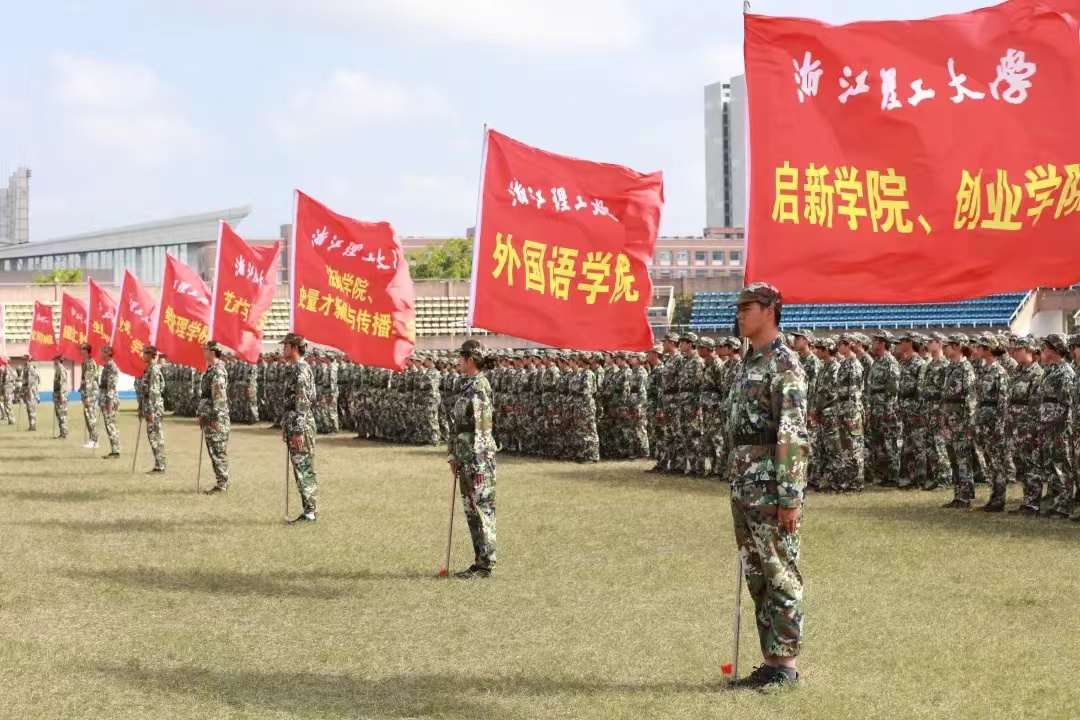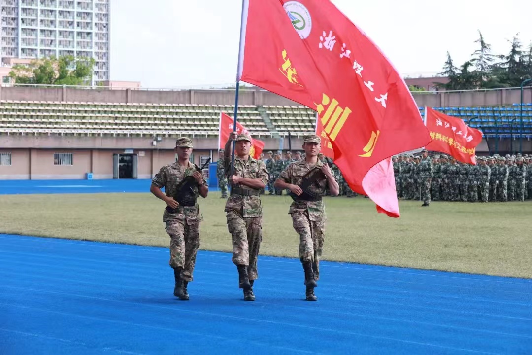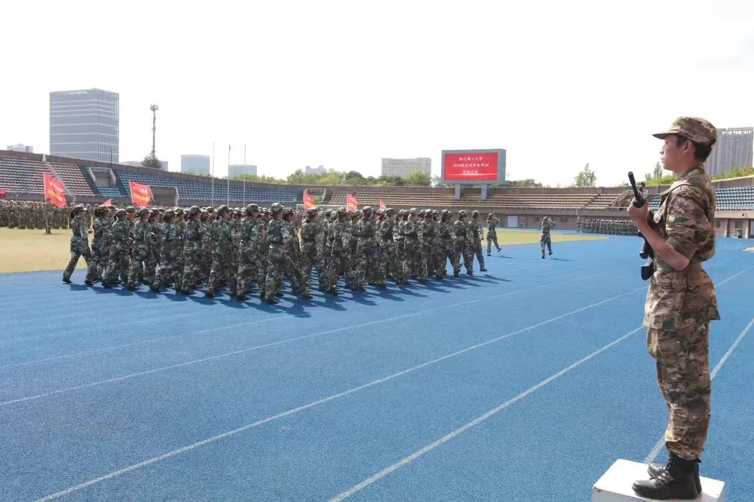 新生们眼神坚定、英姿飒爽,历经军训的磨砺,如宝剑出鞘,锋芒毕露。迎过军训师师旗,奏响军歌,标兵就位,分列式汇演正式开始。分列式后,组合拳、班组战术、捕俘刀、刺杀操等一系列的表演都让人叹为观止,展现着浙理学子踔厉奋发的精神风貌。