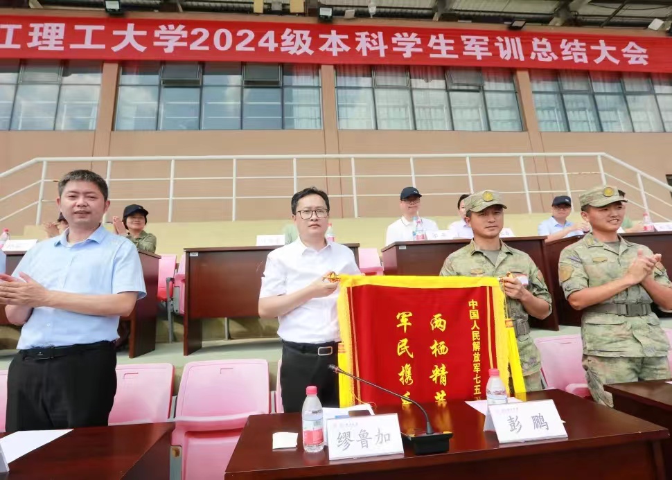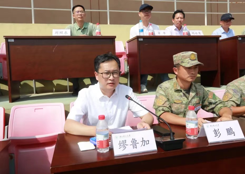 缪鲁加讲话。他代表学校向75210部队和全体指战员表达感谢与敬意,向参与军训工作的教职工致以慰问,并向全体参训同学表示祝贺。缪鲁加指出,今年的军训提出了新要求、新标准,给军训工作带来了新挑战。他以军训的合作“情比金坚”、军训的过程“咬紧牙关”、军训的成果“精彩纷呈”三个词高度概括并赞扬了24级新生军训工作。他表示,军训不仅让同学们学到了军事知识和技能,增强了国防意识、安全意识、爱国主义精神和集体荣誉感,还让大家经历了心灵的洗礼升华,得到真正的成长和磨砺。他希望同学们在今后继续保持坚韧不拔的品质,以一往无前、披荆斩棘的决心和勇气去战胜困难,努力把自己培养成为德才兼备的新时代优秀人才,以实际行动报效祖国,书写人生道路的绚丽篇章!