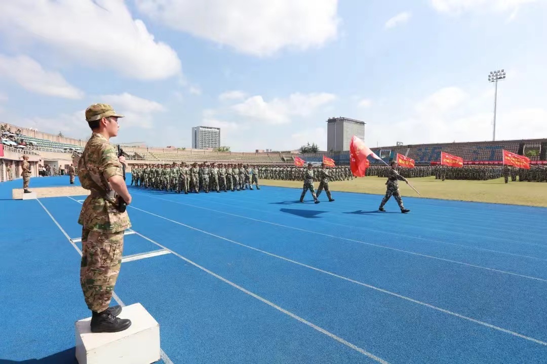 上午9:00,各营迈着铿锵的步伐,迎着飘扬的五星红旗入场。伴着慷慨激昂的国歌,大会拉开序幕。整齐的队列,如钢铁长城般屹立;嘹亮的口号,如惊雷乍响般震撼;坚定的步伐,如战鼓擂动般有力;迷彩的海洋,涌动着青春活力。