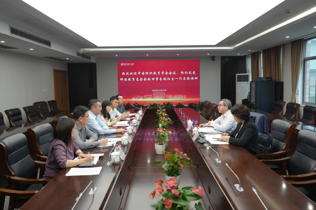 10月16日上午,中国纺织服装教育学会会长、纺织之光科技教育基金会副理事长倪阳生一行来校专题调研“纺织之光”中国纺织工业联合会教育奖推荐评审工作。副校长姚菊明陪同调研并主持座谈会。