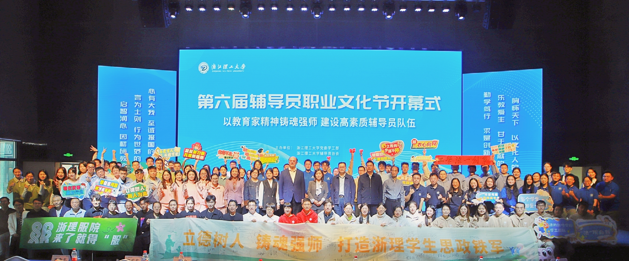 为深入学习贯彻习近平总书记重要讲话和全国教育大会精神,落实《中共中央 国务院关于弘扬教育家精神加强新时代高素质专业化教师队伍建设的意见》等文件要求,提升辅导员队伍专业化、职业化水平,服务学校“双一流”高水平大学建设,10月23日,我校举行第六届辅导员职业文化节开幕式,校党委副书记缪鲁加、浙江省教育厅宣传教育与统战处调研员丁晓出席开幕式。