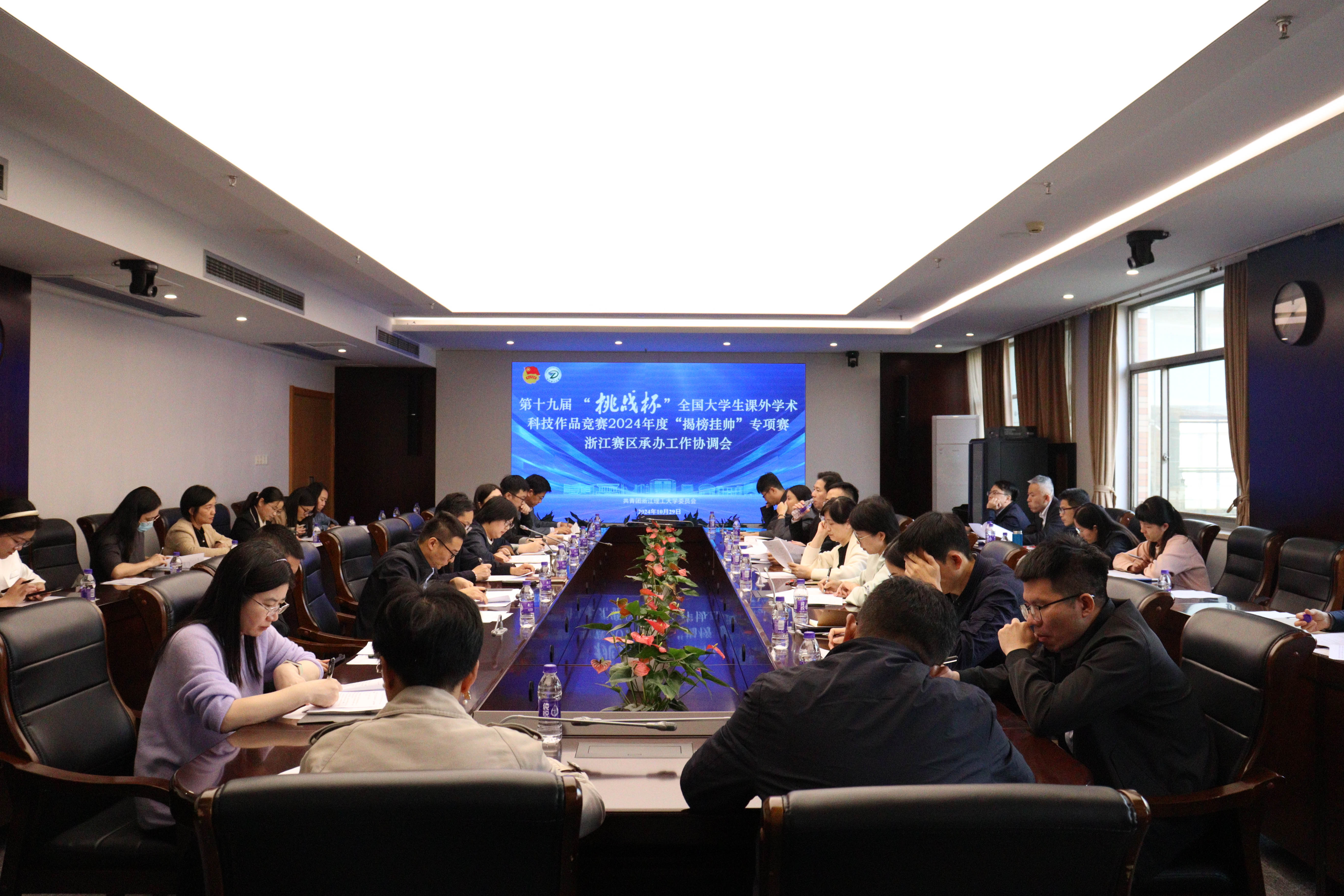 10月29日下午,第十九届“挑战杯”全国大学生课外学术科技作品竞赛2024年度“揭榜挂帅”专项赛浙江赛区(mk官方网站_mk(中国)赛场)承办工作协调会在下沙校区行政楼308会议室召开,校党委副书记缪鲁加出席会议并讲话。