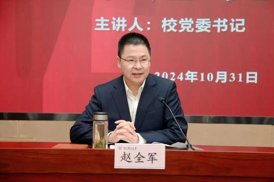 赵全军作题为《以全面深化改革为牵引 着力推动学校高质量发展 为全面开创特色鲜明的研究型高水平大学建设提供磅礴力量》的专题党课,从全面准确把握党的二十届三中全会的精神实质、科学分析把握高校全面深化改革的重点领域和内容、高质量抓好全面深化改革工作的落实等方面进行了系统深入地阐释。