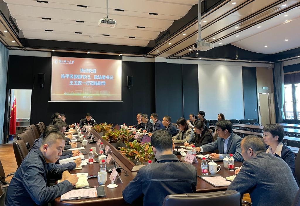 座谈会上,王卫安对我校临平校区安全管理工作成效表示肯定,对安全管理方面的精细化措施给予充分肯定。他在讲话中特别指出我校建立校园安全信息平台、推行安全责任制度、在宿舍管理中实行信息预警机制等管理模式,有效地提升了安全管理效率。他强调高校校园安全稳定是学校高质量发展的前提,学校要进一步完善安全防范体系,提升安全治理效能,维护安全稳定的校园环境。他表示,临平区委政法委也会进一步支持学校发展建设,在治安管理、交通治理、环境治理等方面给予学校更多支持,为学校发展创造良好条件。